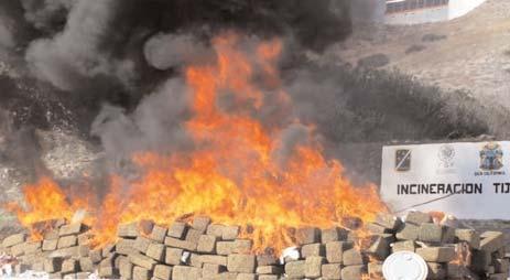 En presencia de autoridades de los tres niveles de gobierno y organizaciones civiles,la Fiscalía General de la República incineró,en instalaciones militares de Baja California,aproximadamente nueve toneladas de marihuana, cocaína,metanfetaminas y otras drogas, con valor comercial de cientos de millones de pesos,que se presume iban a ser ingresadas,en su mayoría,a Estados Unidos para su venta y consumo.