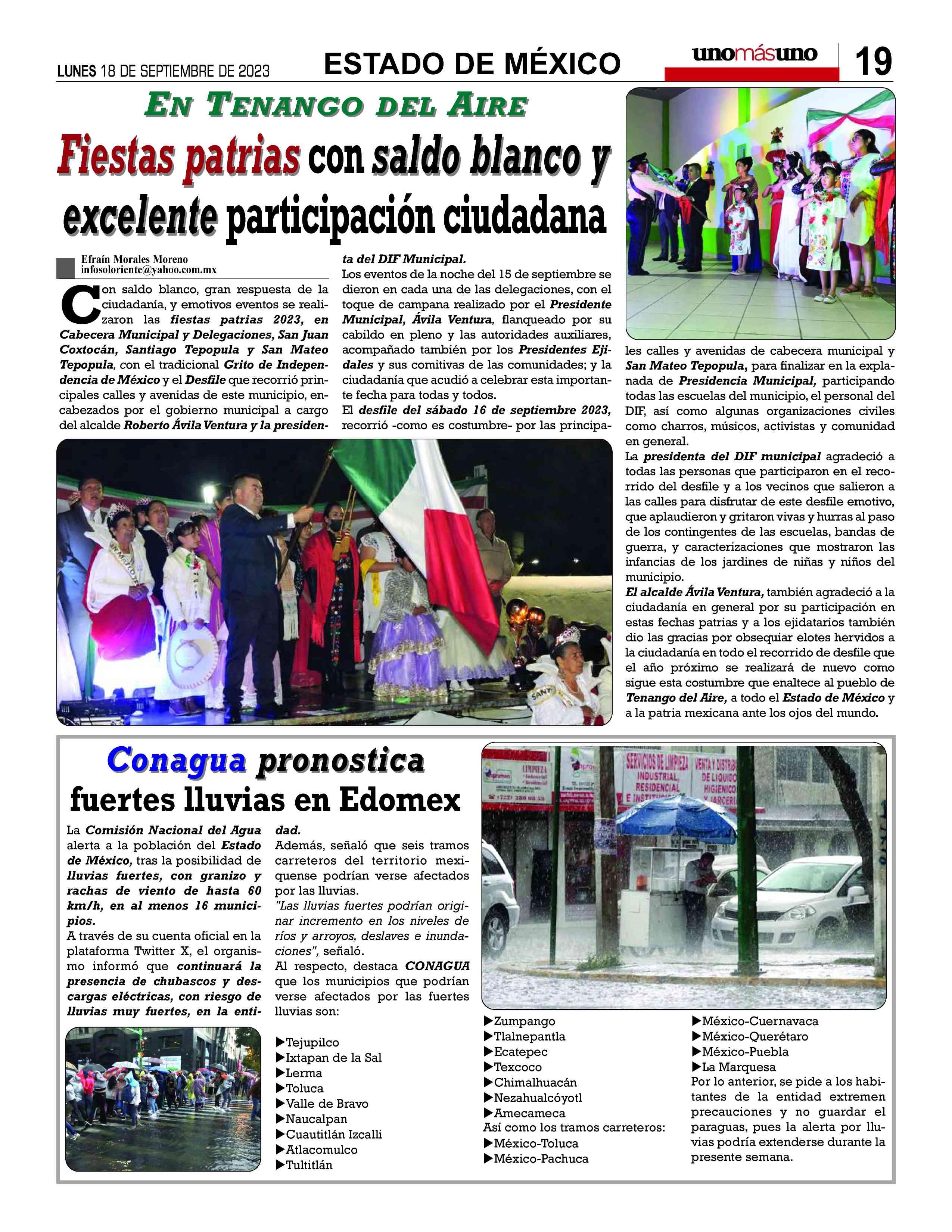 AñoXLV-Número15930Lunes18deseptiembre2023 UNOMÁSUNONACIONALunapublicacióndiaria,editada ydistribuidaporArrendadoraMultiusos,S.A.deC.V. entalleresdeGabinoBarreda86bis.Col.SanRafael,Ciudad deMéxico,C.P.06470,DelegaciónCuauhtémoc TeléfonoCDMX:55/10555500.Ext.Redacción102-103y105, PlantaToluca017221340000Ext.116.