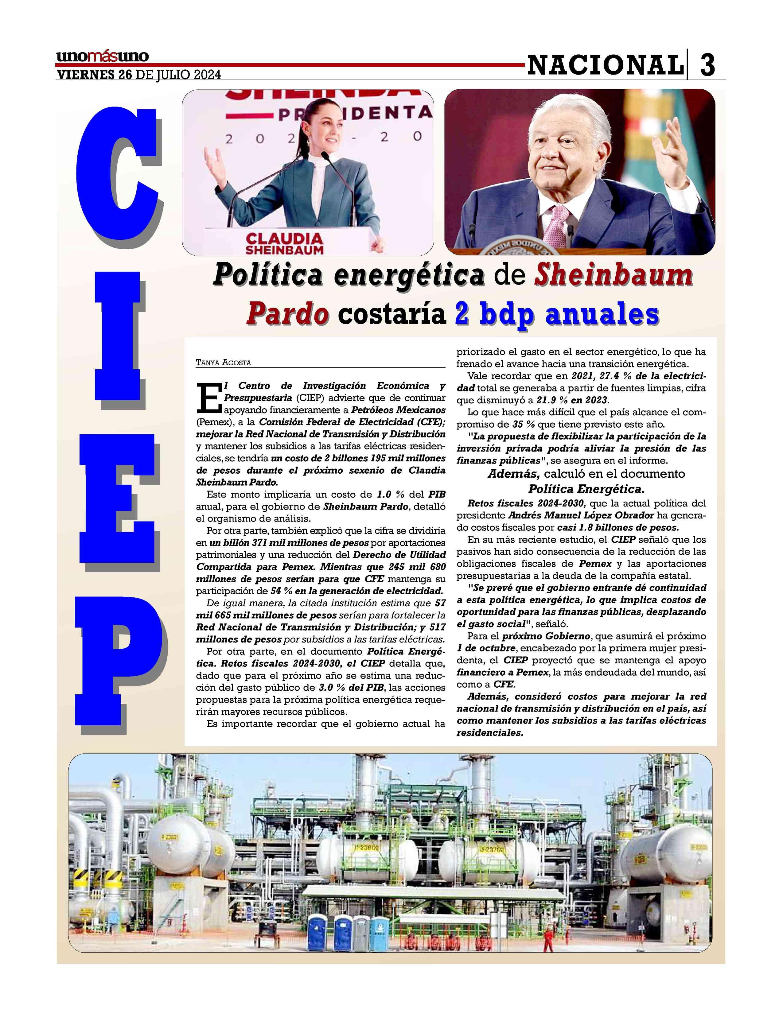 Política Política energética energética deSheinbaum Sheinbaum costaría2bdp 2bdp anuales anuales: :CIEP CIEP