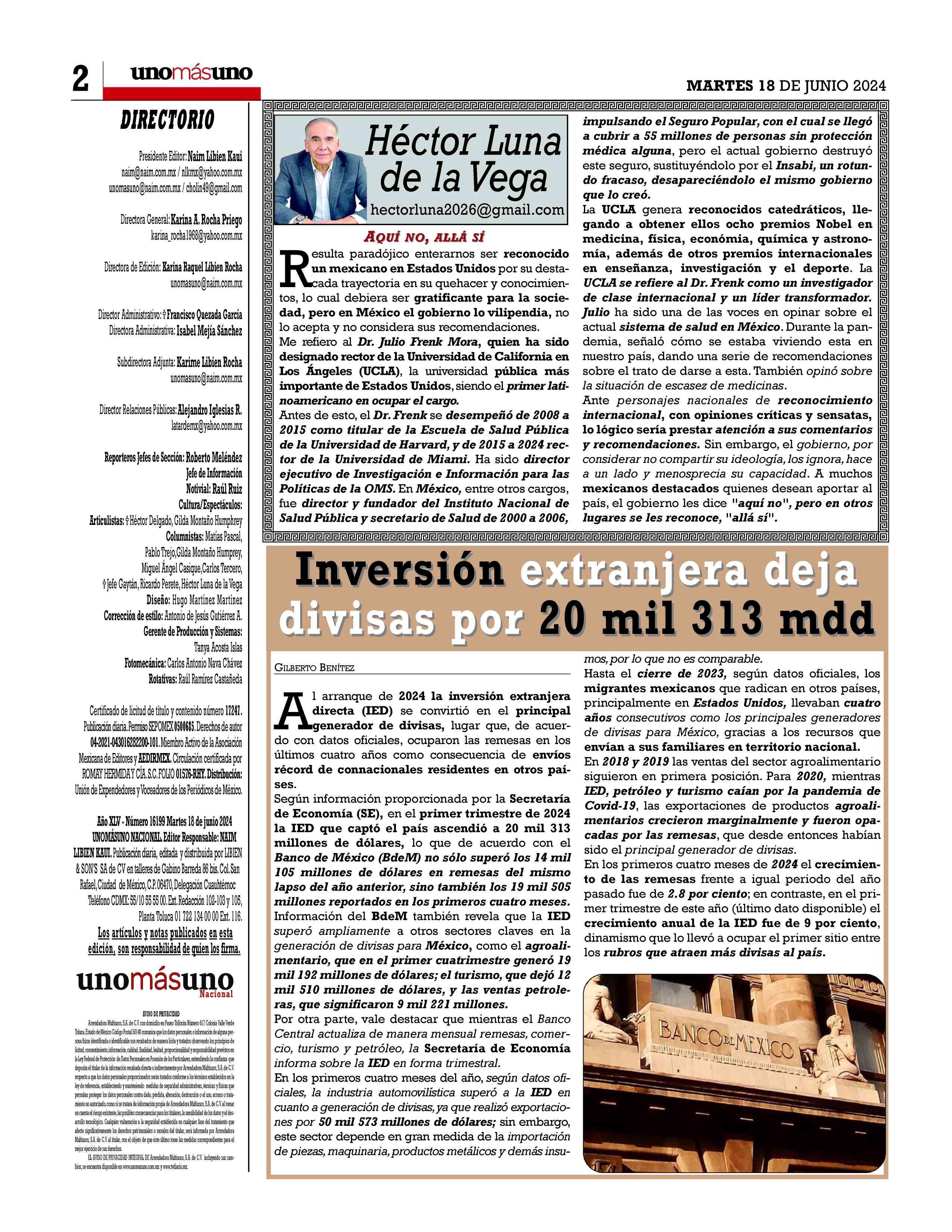Cambiando de Tema, los conductores del gustado y visto noticiario afirmaron que para todos los mexicanos es un orgullo que el exsecretario de Salud durante la administración del expresidente Vicente Fox, Julio Frenk Mora,hayasidodesignado rector de la Universidad de California en Los Ángeles (UCLA), cargo que asumirá el 1 de enero del año entrante. El exfuncionario hizo frente, con éxito,a la influenza,lo que fue reconocido internacionalmente.