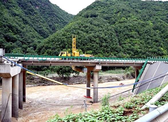 Las autoridades dijeron que una parte del puente del condado de Zhashui,en la ciudad de Shangluo,se derrumbó por las recientes lluvias e inundaciones repentinas.