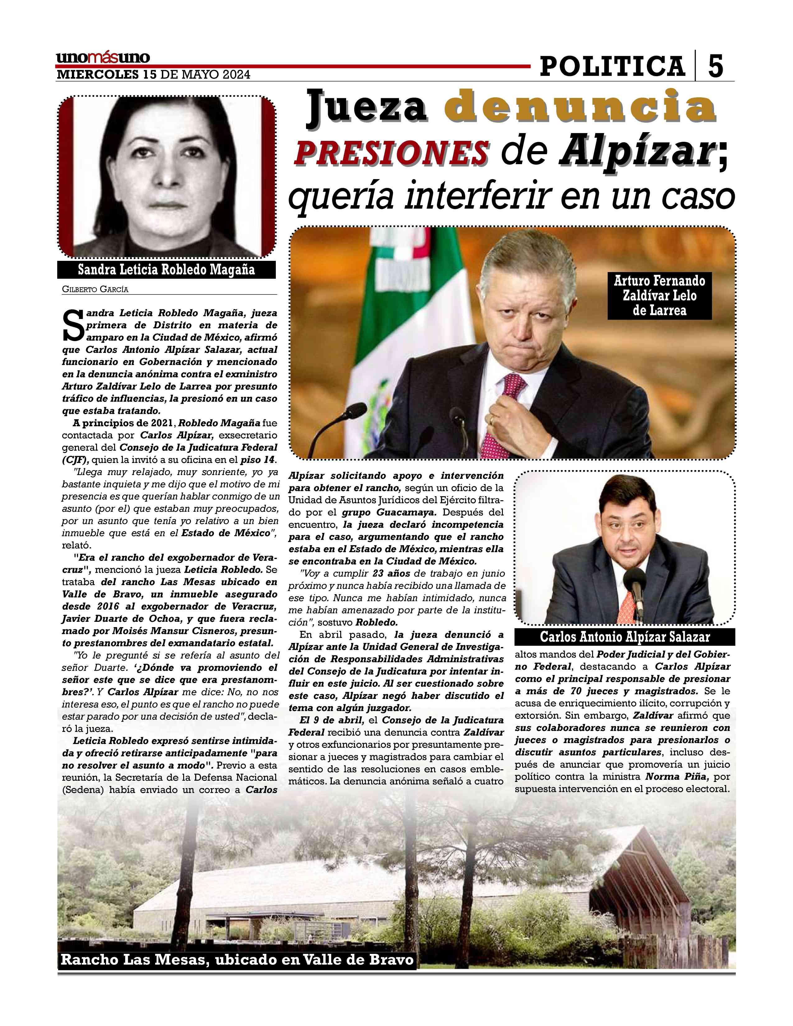De la misma forma se informó que la diputada federal Pérez-Jaén, también ratificó la denuncia que había presentado con anterioridad en contra del exministro presidente de la Suprema Corte de Justicia de la Nación (SCJN), Arturo Zaldívar Lelo de Larrea, el pasado4demarzo,porpresuntaspresionesa jueces y magistrados.