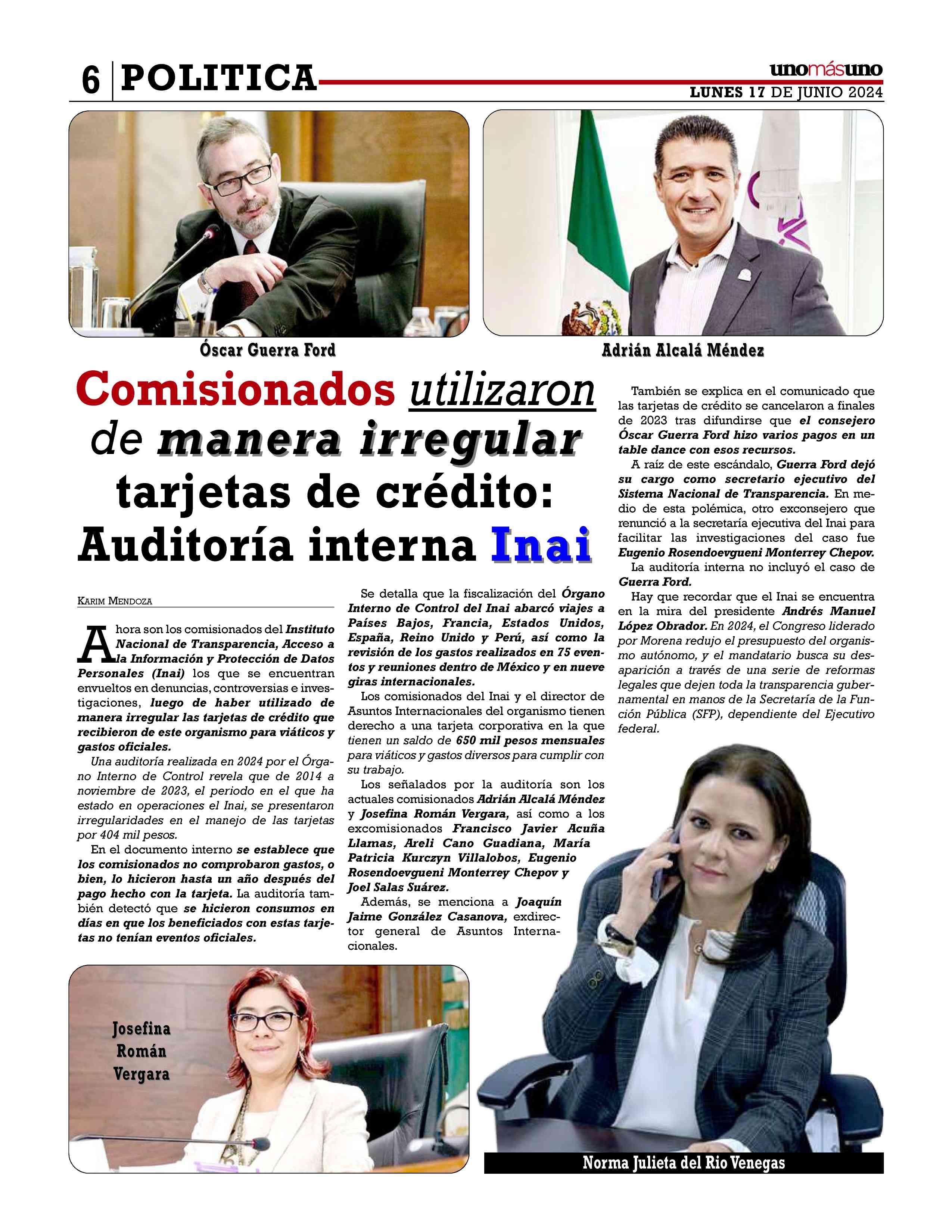 Comisionados Comisionados utilizarondemanera manera irregular irregulartarjetas decrédito:Auditoría internaInai Inai