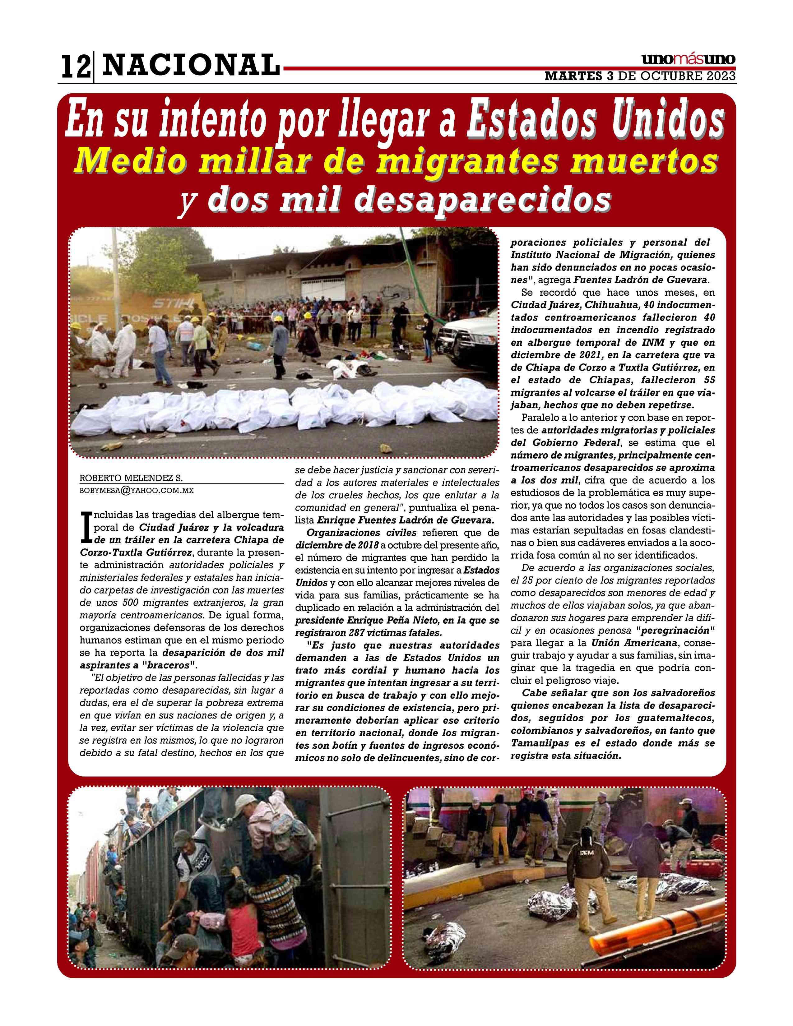 Asímismo,publicó:"Alamanecerdeeste díasenotificaquecompañerosdeestemedio fueronasesinadosenChiapasporrazones quesedesconocen,desgraciadamenteeste mediosiemprehasidogolpeadoynadiedice nadayquedaimpuneestetipodesituaciones, recordemosquélespasóacompañerosde ParametríayConsultaMitofskyen Morelia,fueron11personasquesecuestraron ynadamásregresaron7,queenlosmedios nuncadicen,tambiénrecordemoselcasode PueblaconloshermanosCopadoMolina quefueronlinchadosporsupuestamenteconfundirlosconsecuestradores".
