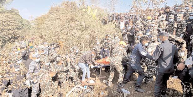 Las primeras investigaciones aseguran que el fuselaje incendiado se encontraba en un barranco ubicado entre el antiguo aeropuerto de Pokhara y la nueva terminal internacional,inaugurado el pasado 1 de enero Tras el accidente,los rescatistas trataron de sofocar el fuego entre los restos del avión, un ATR 72 propulsado por dos motores turbohélice.