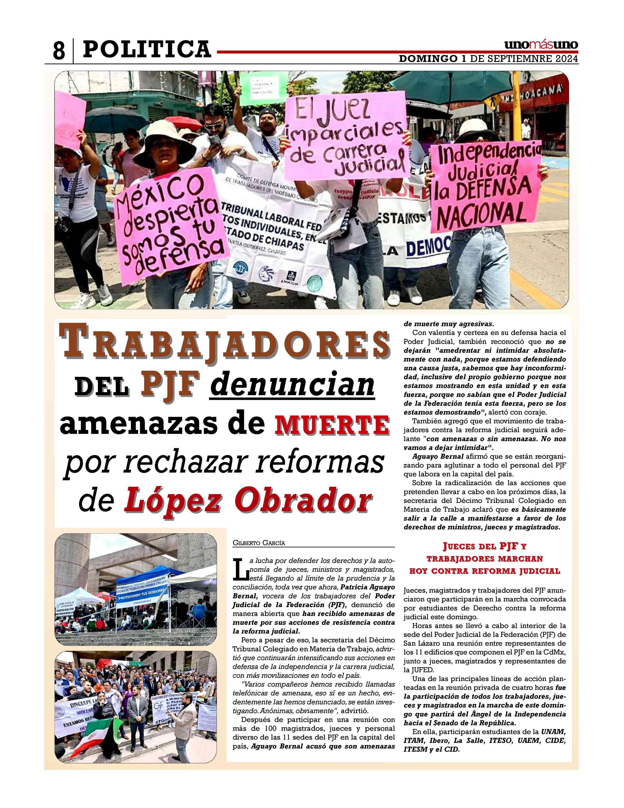 La Asociación Nacional de Magistrados de Circuito y Jueces de Distrito del Poder Judicial de la Federación (JUFED) marchará con los estudiantes, en protesta contra la reforma judicial.