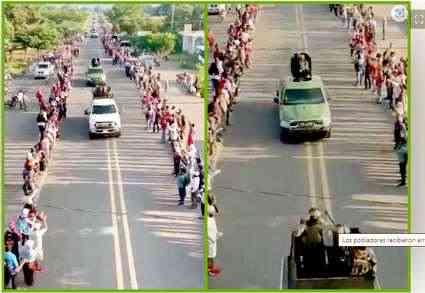 Ladesesperanzayelmiedoentrelos habitantesdelestadodeChiapas alcanzantintesdramáticos,luegode darseaconocerdistintasimágenesde loshabitantesalmomentoderecibir entreaplausoscamionetasconblindajeartesanaldeintegrantesdelCártel deSinaloaenunazonaqueseencuentra endisputaconelCártelJaliscoNueva Generación(CJNG).