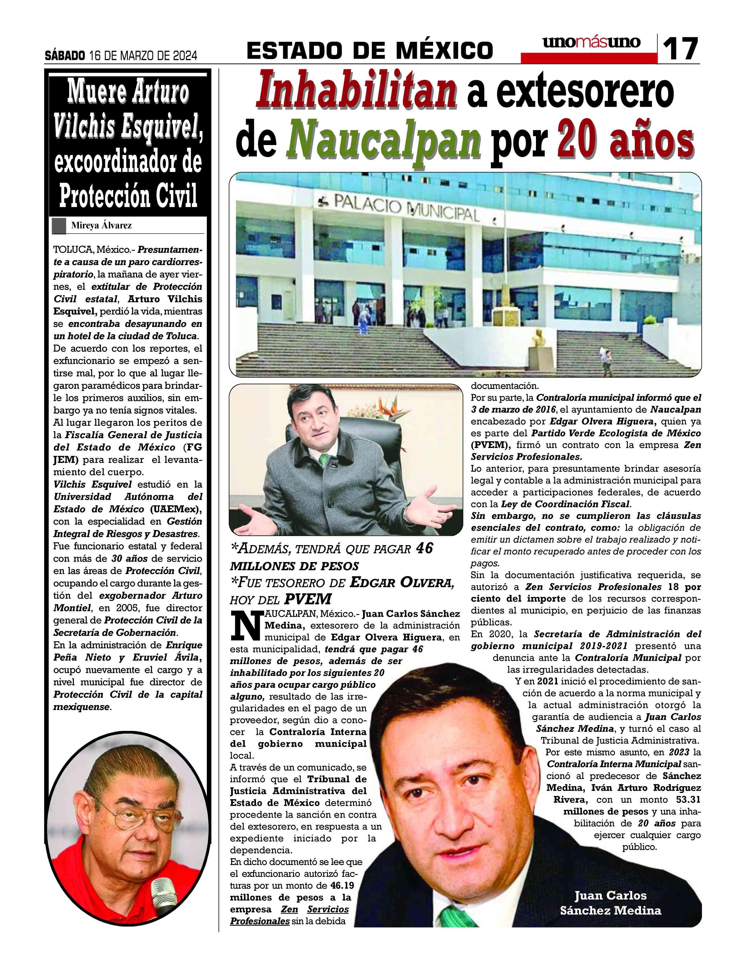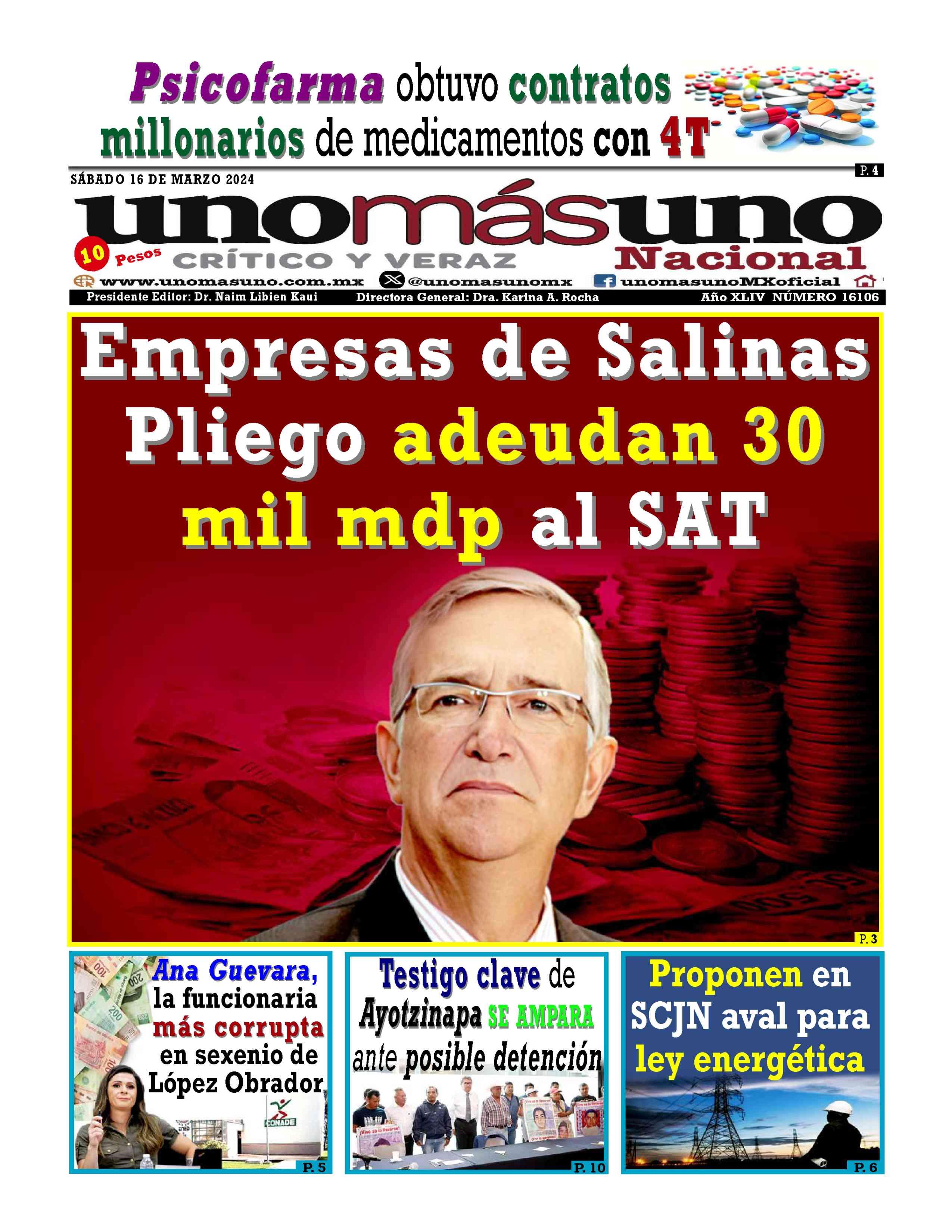 AñoXLV-Número16104Sábado16demarzo2024 UNOMÁSUNONACIONALunapublicacióndiaria,editada ydistribuidaporArrendadoraMultiusos,S.A.deC.V. entalleresdeGabinoBarreda86bis.Col.SanRafael,Ciudad deMéxico,C.P.06470,DelegaciónCuauhtémoc TeléfonoCDMX:55/10555500.Ext.Redacción102-103y105, PlantaToluca017221340000Ext.116.