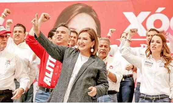 XóchitlGálvezyAlejandro“Alito”Moreno,durantemitinenSaltillo,Coahuila