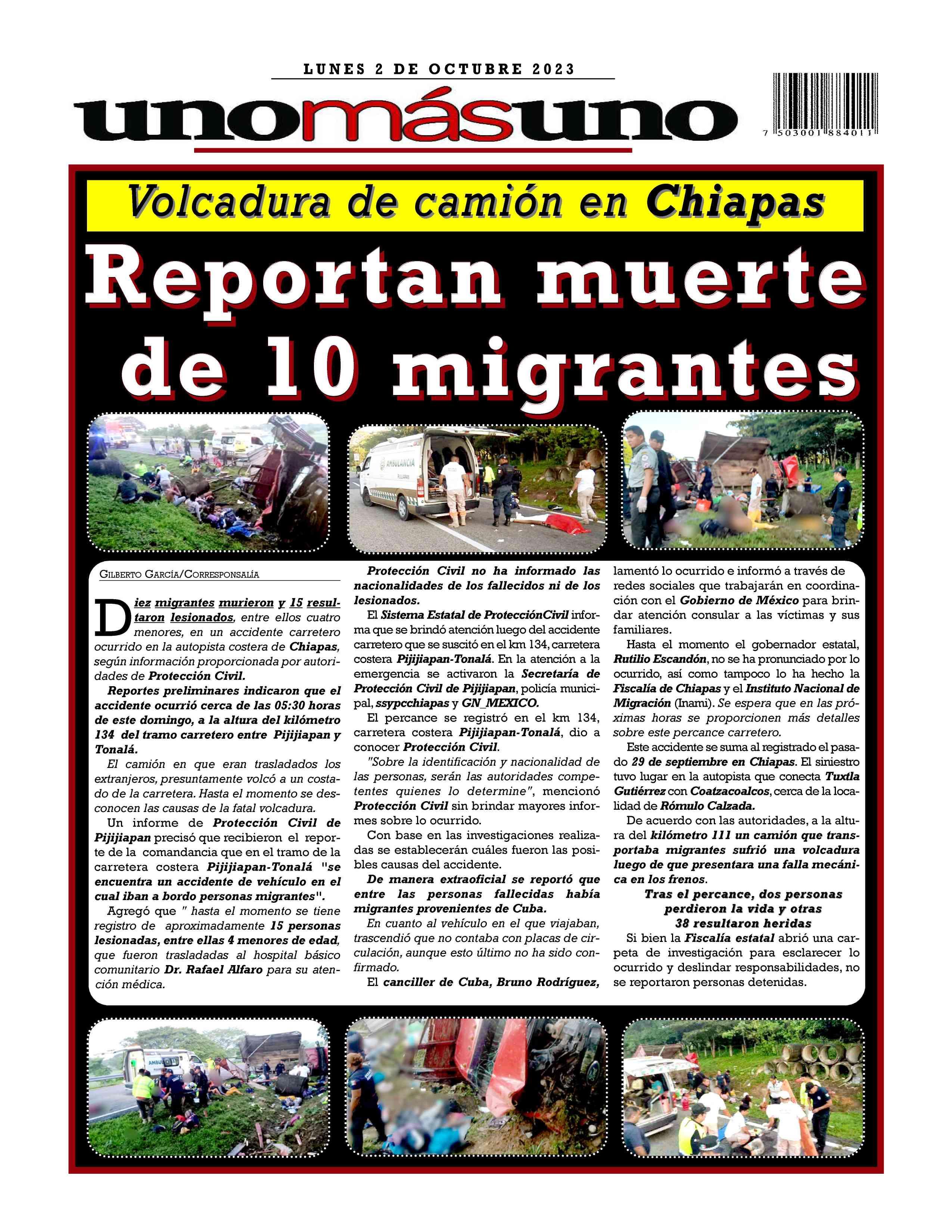 AñoXLV-Número15944Lunes2deoctubre2023 UNOMÁSUNONACIONALunapublicacióndiaria,editada ydistribuidaporArrendadoraMultiusos,S.A.deC.V. entalleresdeGabinoBarreda86bis.Col.SanRafael,Ciudad deMéxico,C.P.06470,DelegaciónCuauhtémoc TeléfonoCDMX:55/10555500.Ext.Redacción102-103y105, PlantaToluca017221340000Ext.116.