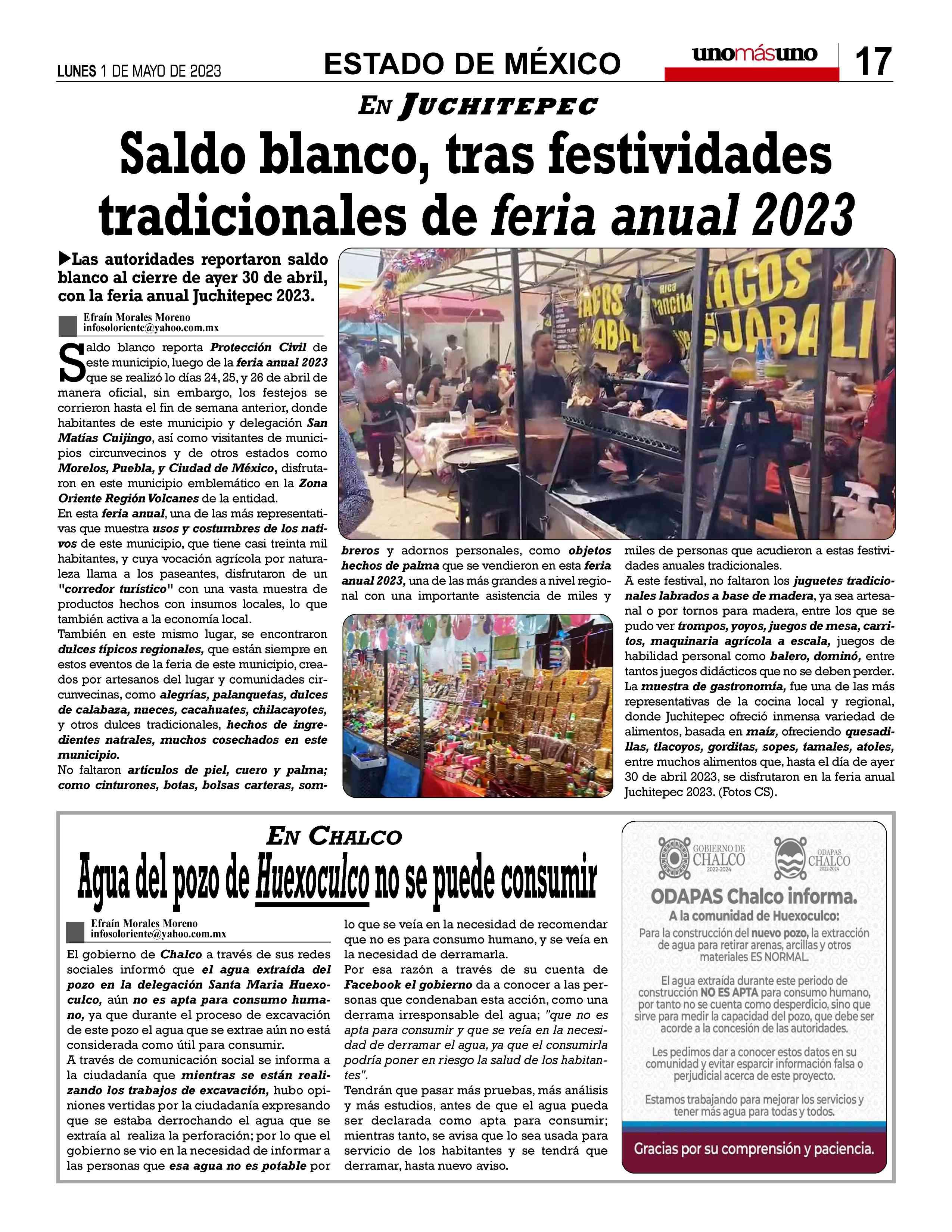 AñoXLV-Número15787Lunes1demayo2023 UNOMÁSUNONACIONALunapublicacióndiaria,editada ydistribuidaporArrendadoraMultiusos,S.A.deC.V. entalleresdeGabinoBarreda86bis.Col.SanRafael,Ciudad deMéxico,C.P.06470,DelegaciónCuauhtémoc TeléfonoCDMX:55/10555500.Ext.Redacción102-103y105, PlantaToluca017221340000Ext.116.
