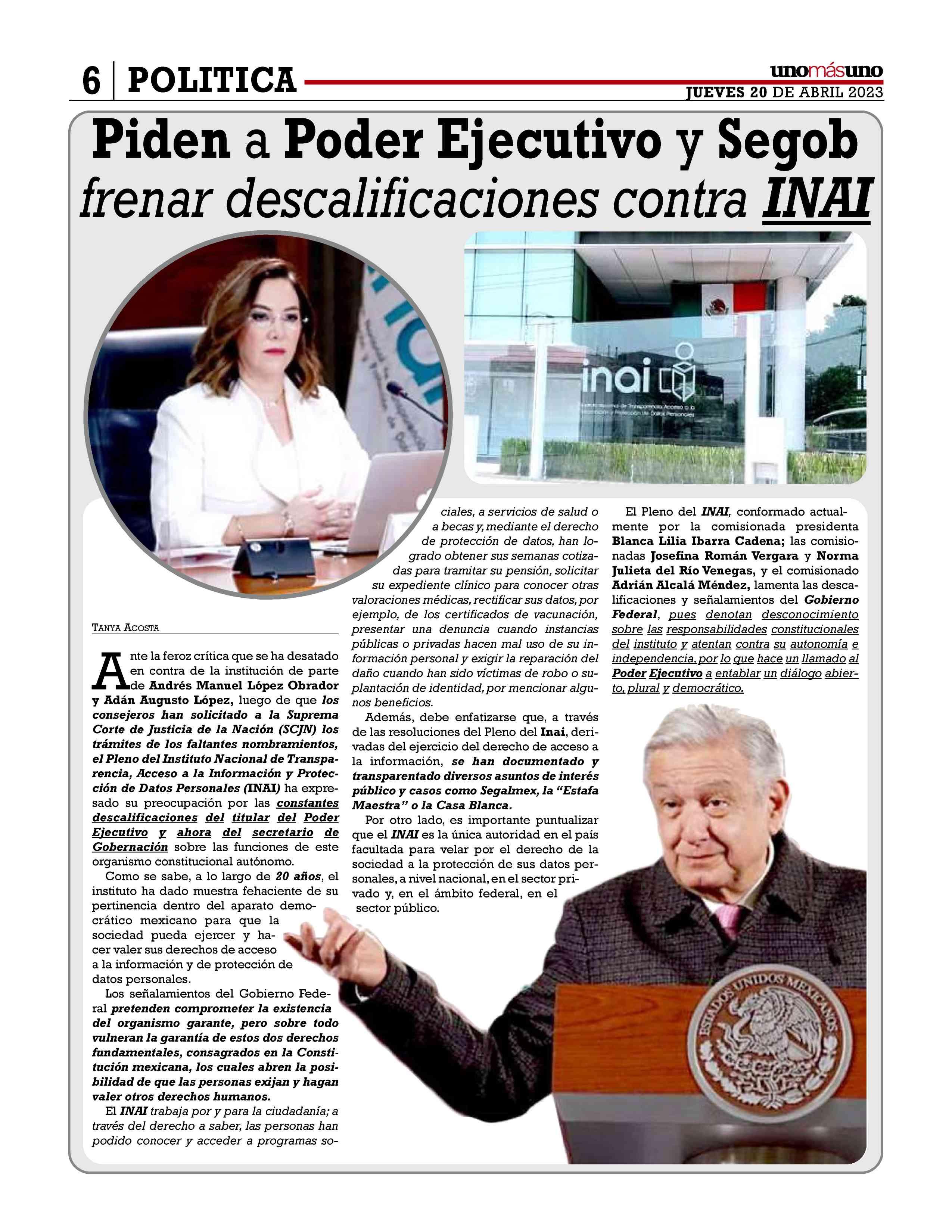 No sólo es incómodo para el poder, sino crucial para mantener la transparencia y combatir la corrupción,dijo. "Lapropuestade absorber sus funciones en la Secretaría de la Función Públicaesunretroceso,yaqueelINAIvamásalládelPoder Ejecutivo y vela por la transparencia en todos los órganos garantes". Con cuatro consejeros aún por nombrar y dos vetados, enfrenta desafíos en su estructura, pero ella ya puso en la mesa su postura.