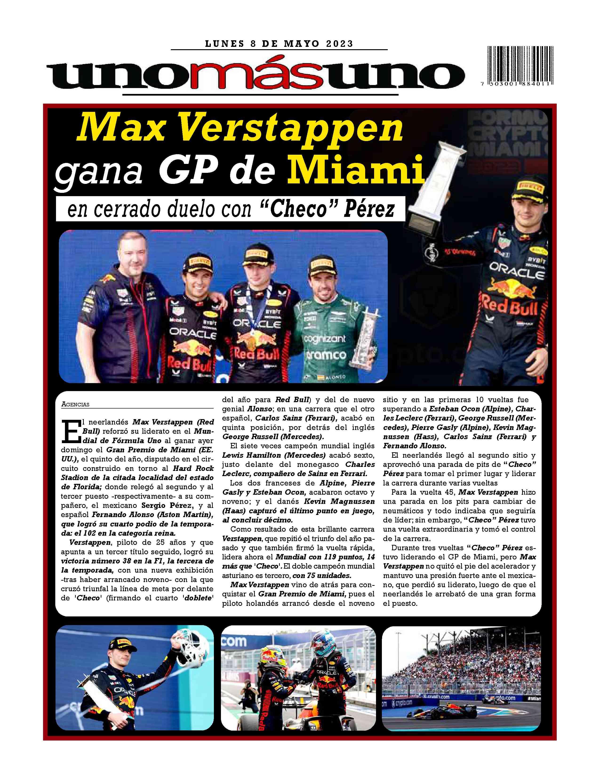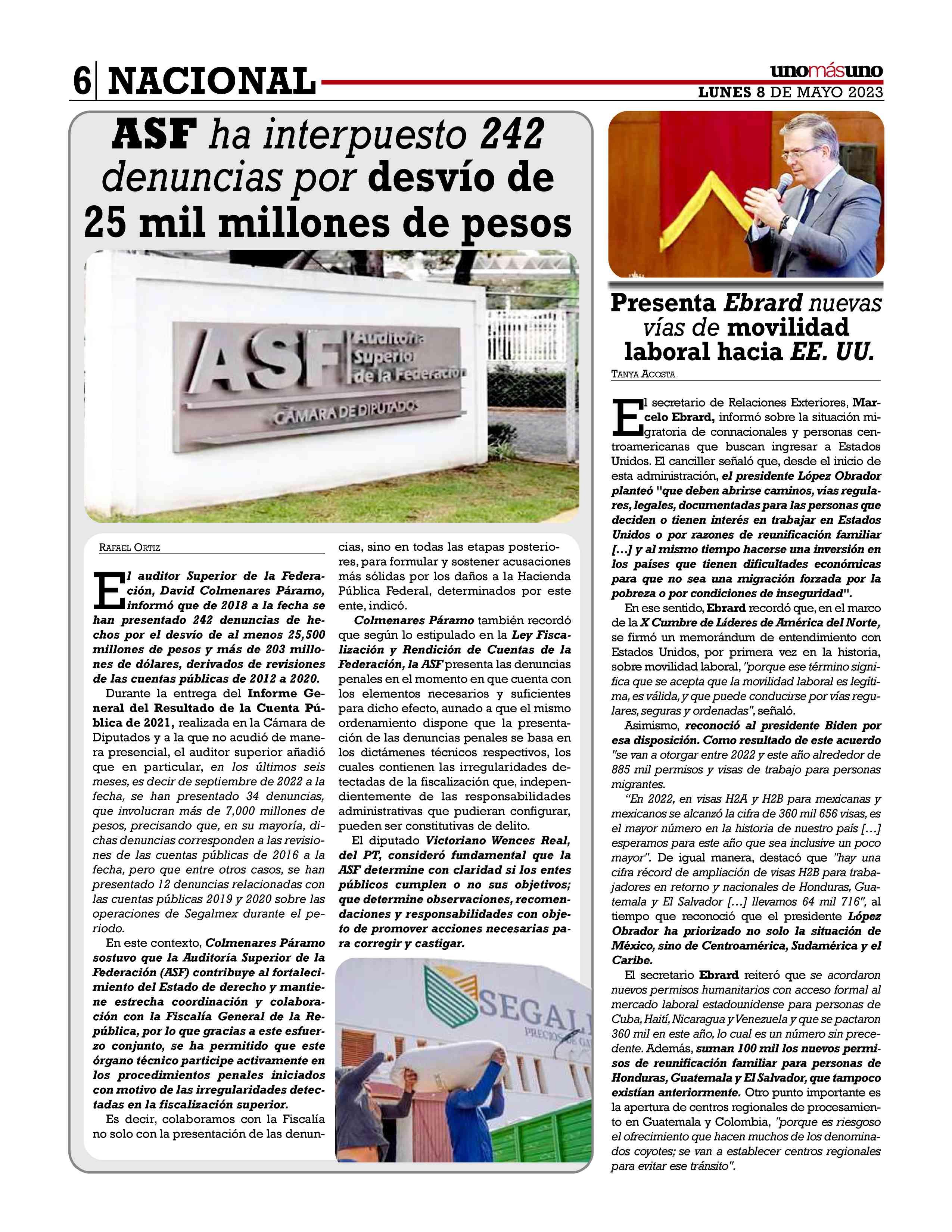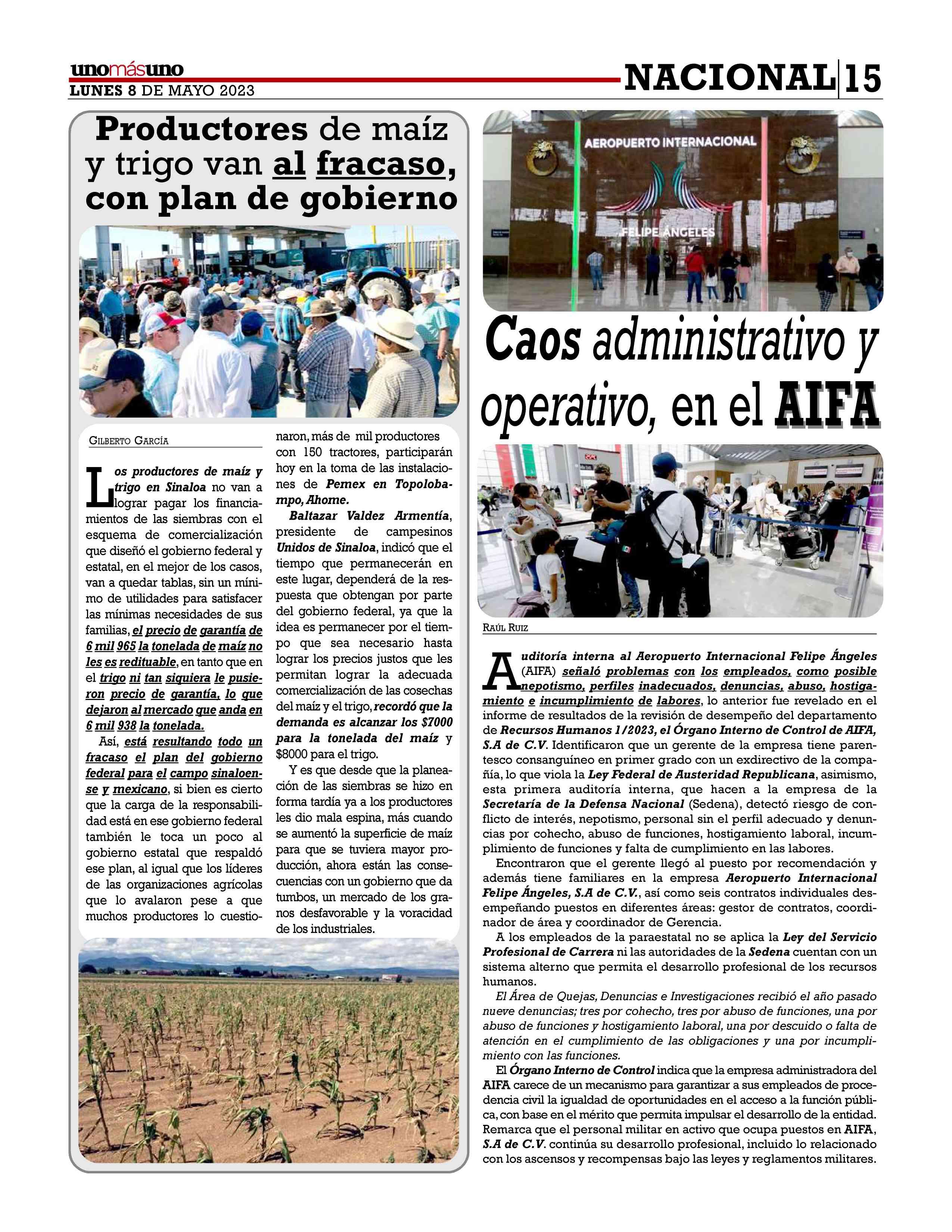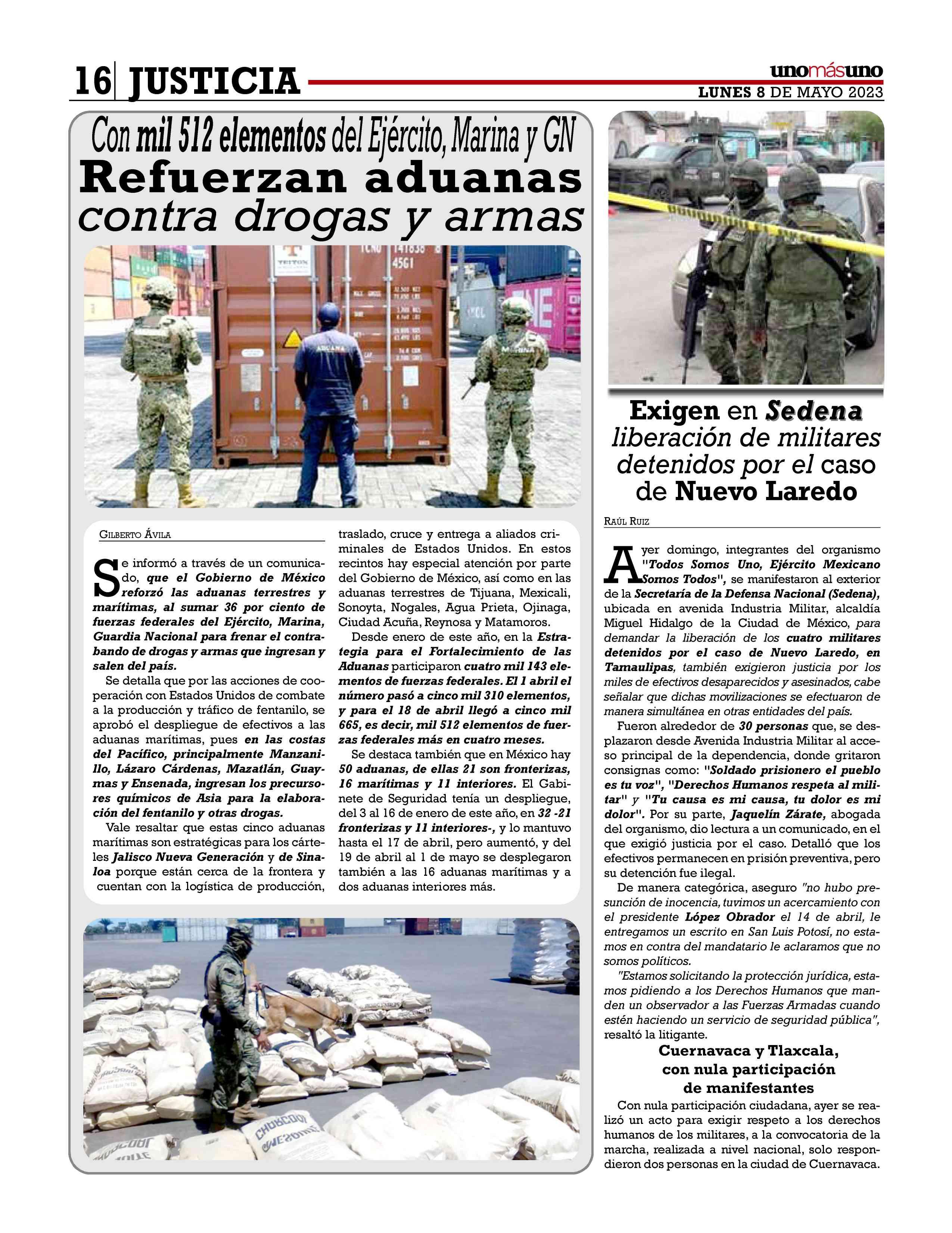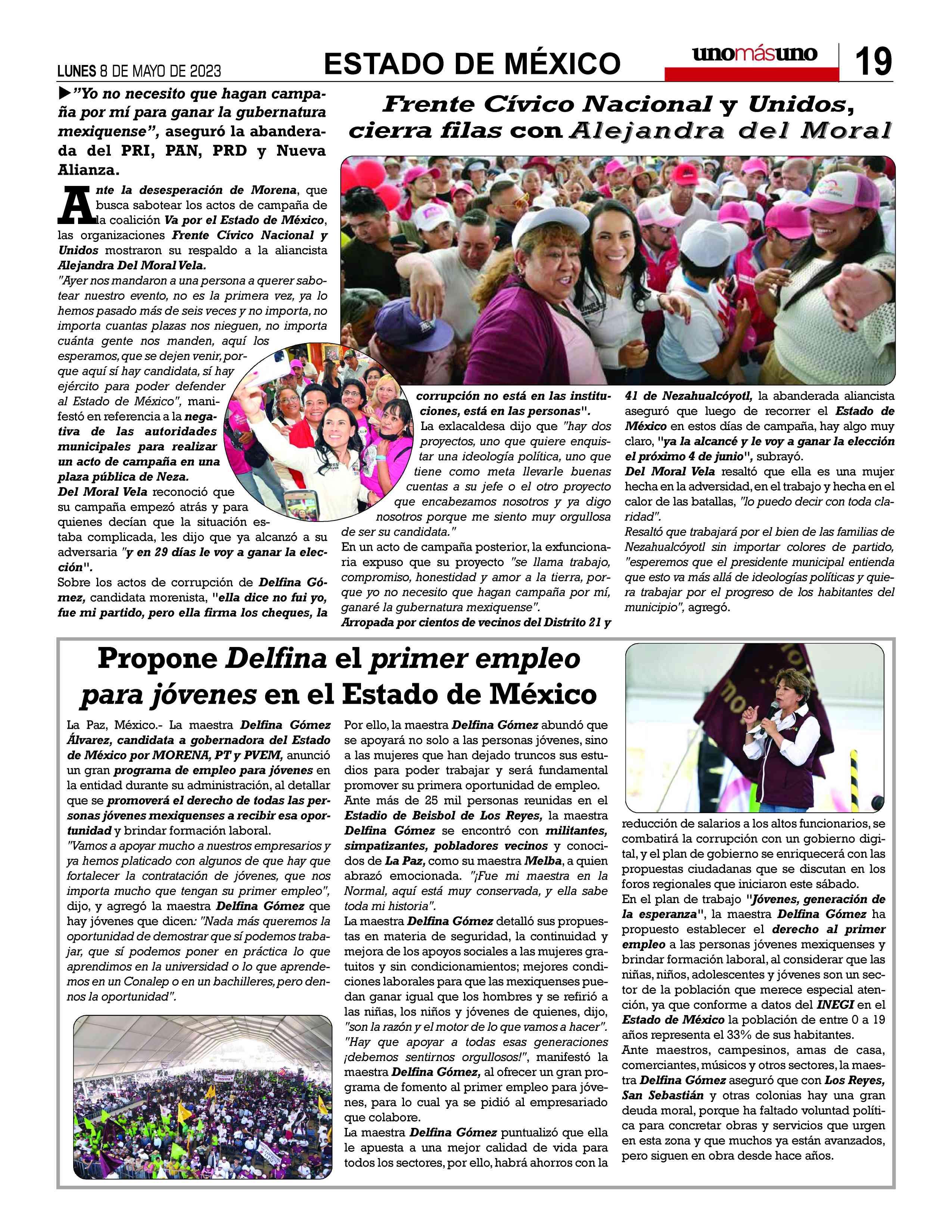 AñoXLV-Número15794Lunes8demayo2023 UNOMÁSUNONACIONALunapublicacióndiaria,editada ydistribuidaporArrendadoraMultiusos,S.A.deC.V. entalleresdeGabinoBarreda86bis.Col.SanRafael,Ciudad deMéxico,C.P.06470,DelegaciónCuauhtémoc TeléfonoCDMX:55/10555500.Ext.Redacción102-103y105, PlantaToluca017221340000Ext.116.