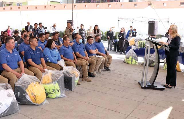 Al encabezar la entrega de este equipo,la presidenta municipal, Romina Contreras Carrasco, reconoció el trabajo 24/7 que realizan los elementos de esta corporación,lo que permite atender las emergencias en el menor tiempo posible,con la intención de proteger a la población.