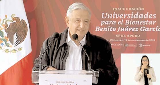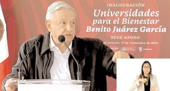Ayer sábado, el presidente Andrés Manuel López Obrador,durante la inauguración de la Universidad del Bienestar Benito Juárez,en el municipio de Aporo,en Michoacán,recordó que en 2024 finaliza su mandato y reiteró su compromiso de terminar su ciclo porque ya lleva luchando 40 años.