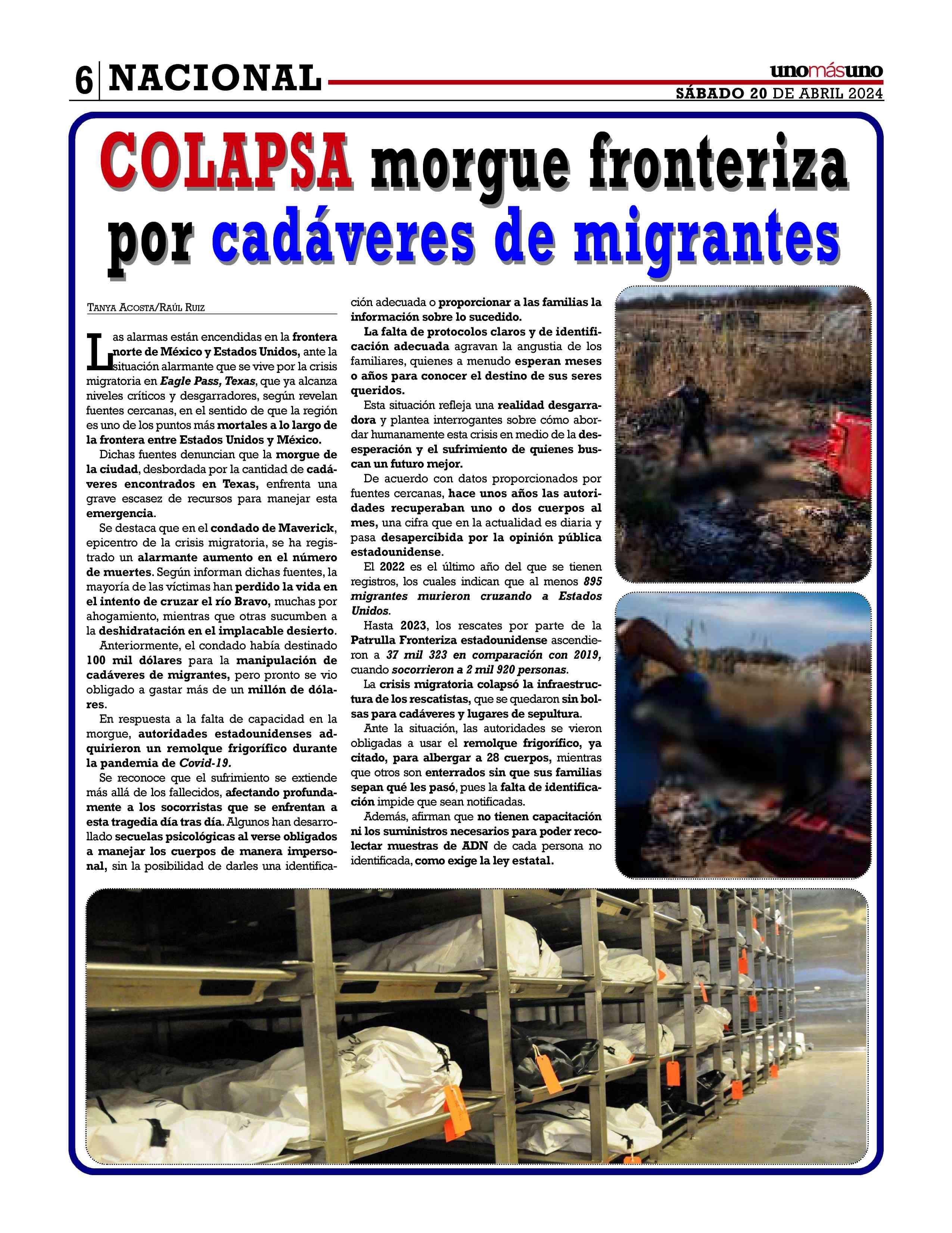 COLAPSADA, COLAPSADA, morguefronteriza morguefronteriza por porcadáveres cadáveres demigrantes demigrantes
