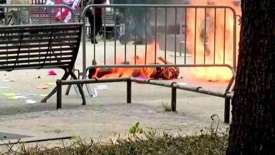 Hombreseprendefuego, fuego, mientrasDonaldTrump DonaldTrumpesjuzgado