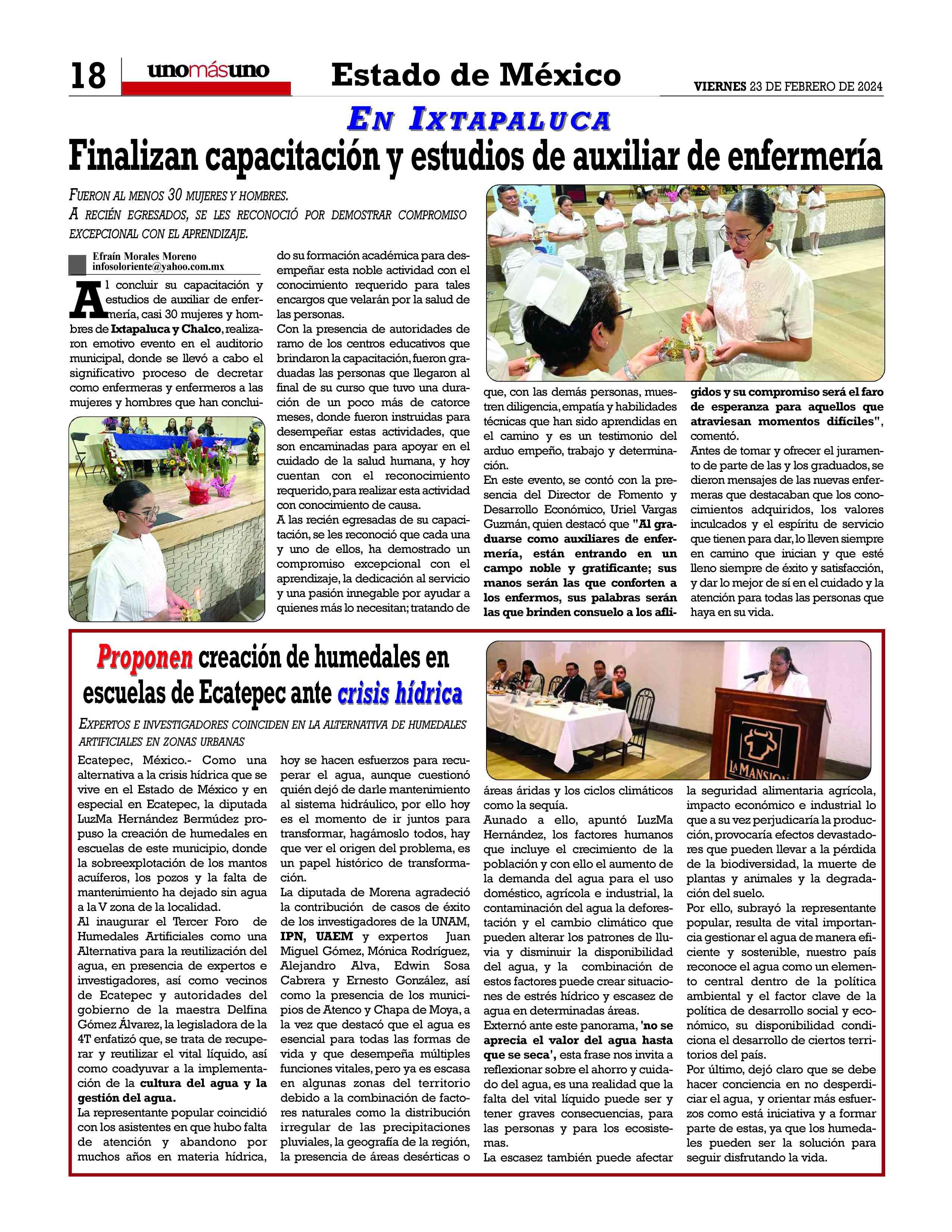 AñoXLV-Número16085Viernes23defebrero2024 UNOMÁSUNONACIONALunapublicacióndiaria,editada ydistribuidaporArrendadoraMultiusos,S.A.deC.V. entalleresdeGabinoBarreda86bis.Col.SanRafael,Ciudad deMéxico,C.P.06470,DelegaciónCuauhtémoc TeléfonoCDMX:55/10555500.Ext.Redacción102-103y105, PlantaToluca017221340000Ext.116.