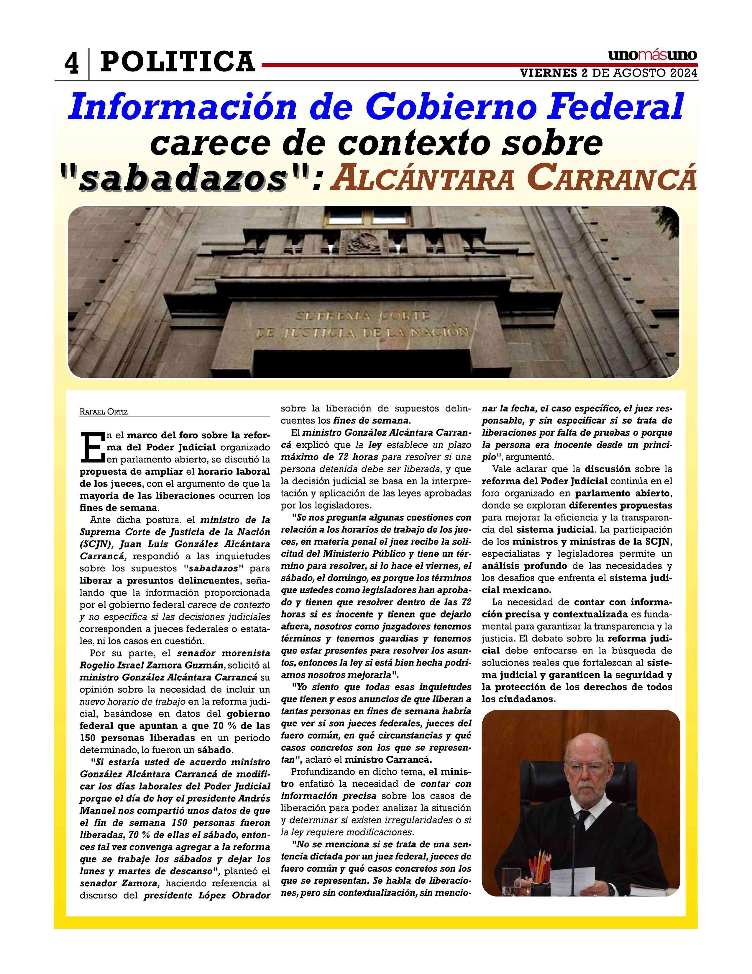 Informaciónde GobiernoFederal carecedecontexto sobre“sabadazos”: AlcántaraCarrancá