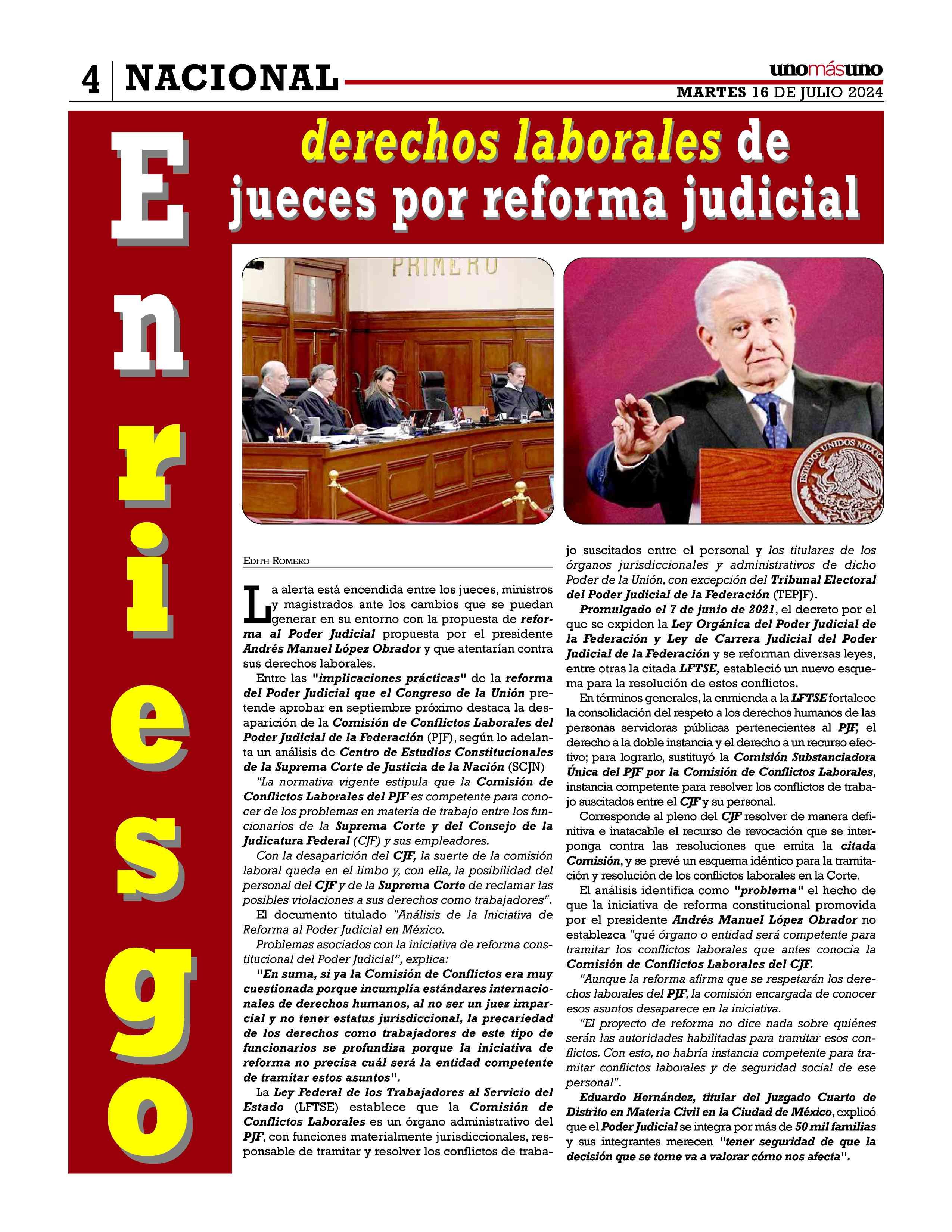 AñoXLV-Número16228Martes16dejulio2024 UNOMÁSUNONACIONAL.EditorResponsable:NAIM LIBIENKAUI.Publicacióndiaria,editadaydistribuidaporLIBIEN &SON’SSAdeCVentalleresdeGabinoBarreda86bis.Col.San Rafael,CiudaddeMéxico,C.P.06470,DelegaciónCuauhtémoc TeléfonoCDMX:55/10555500.Ext.Redacción102-103y105, PlantaToluca017221340000Ext.116. Losartículosynotaspublicadosenesta edición,sonresponsabilidaddequienlosfirma.