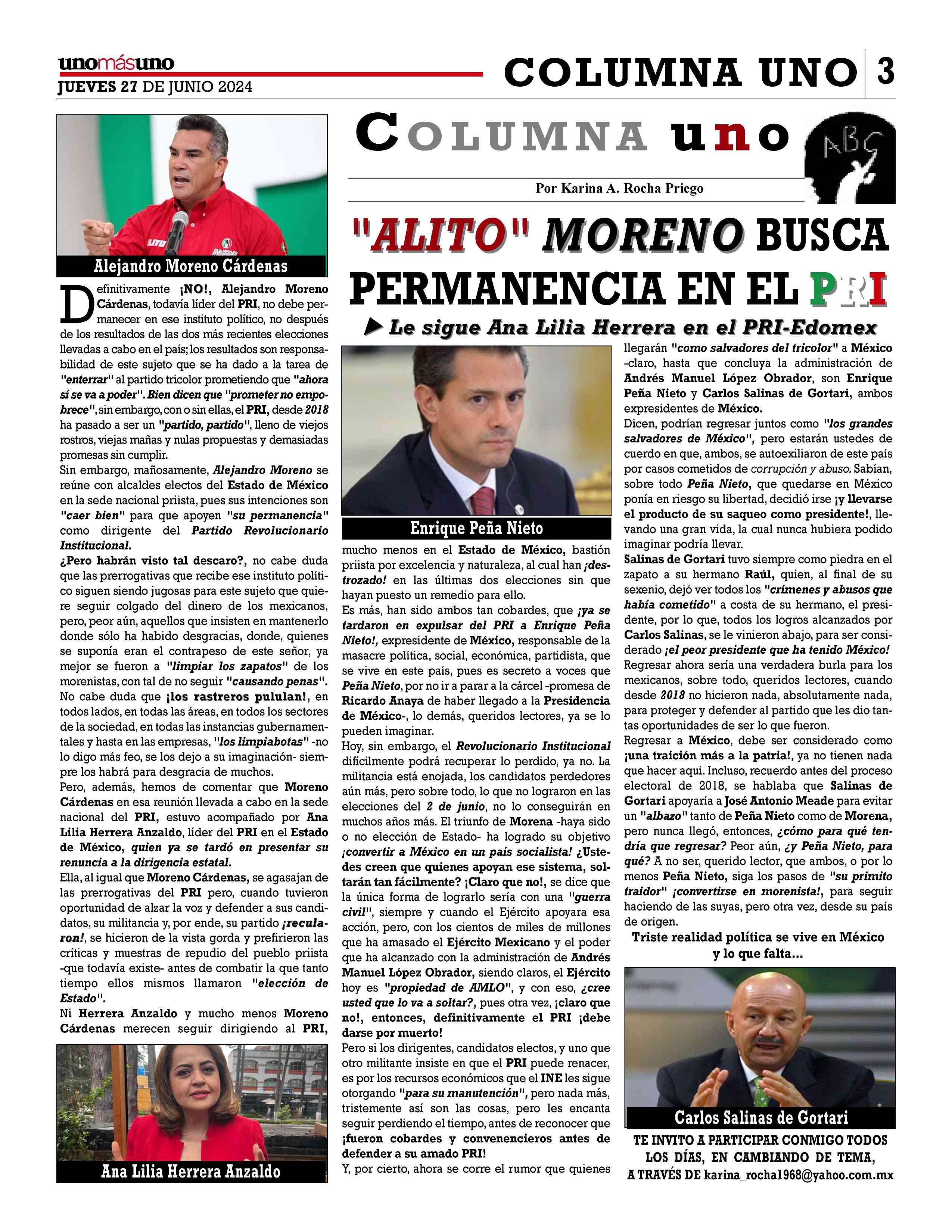Es un gran momento de que este próximo segundo piso se deslinde del primero, pues necesitamos diálogo, y que se cumpla la palabra del presidente saliente… de desaparecer de la política como desapareció Jack Dawson del TITANIC, y congelarse en el anonimato, a escribir sus memorias, aunque a veces creo que la memoria se perdió en los intereses personales, a redactar un libro más y ser del exitoso círculo de escritores "que han escrito más libros de los que han leído".