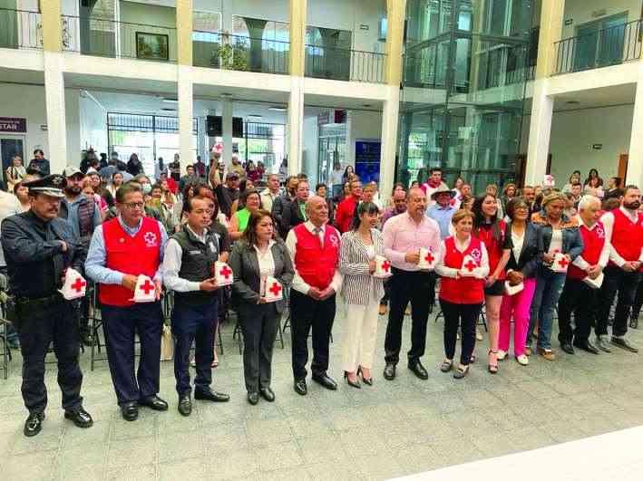 Conlapresenciadelgobiernomunicipal,autoridades de la Benemérita Cruz Roja de Chalco, autoridades auxiliares, algunos integrantesdelcuerpoedilicio,voluntariasyvoluntarios que participarán en la colecta,se dirigió