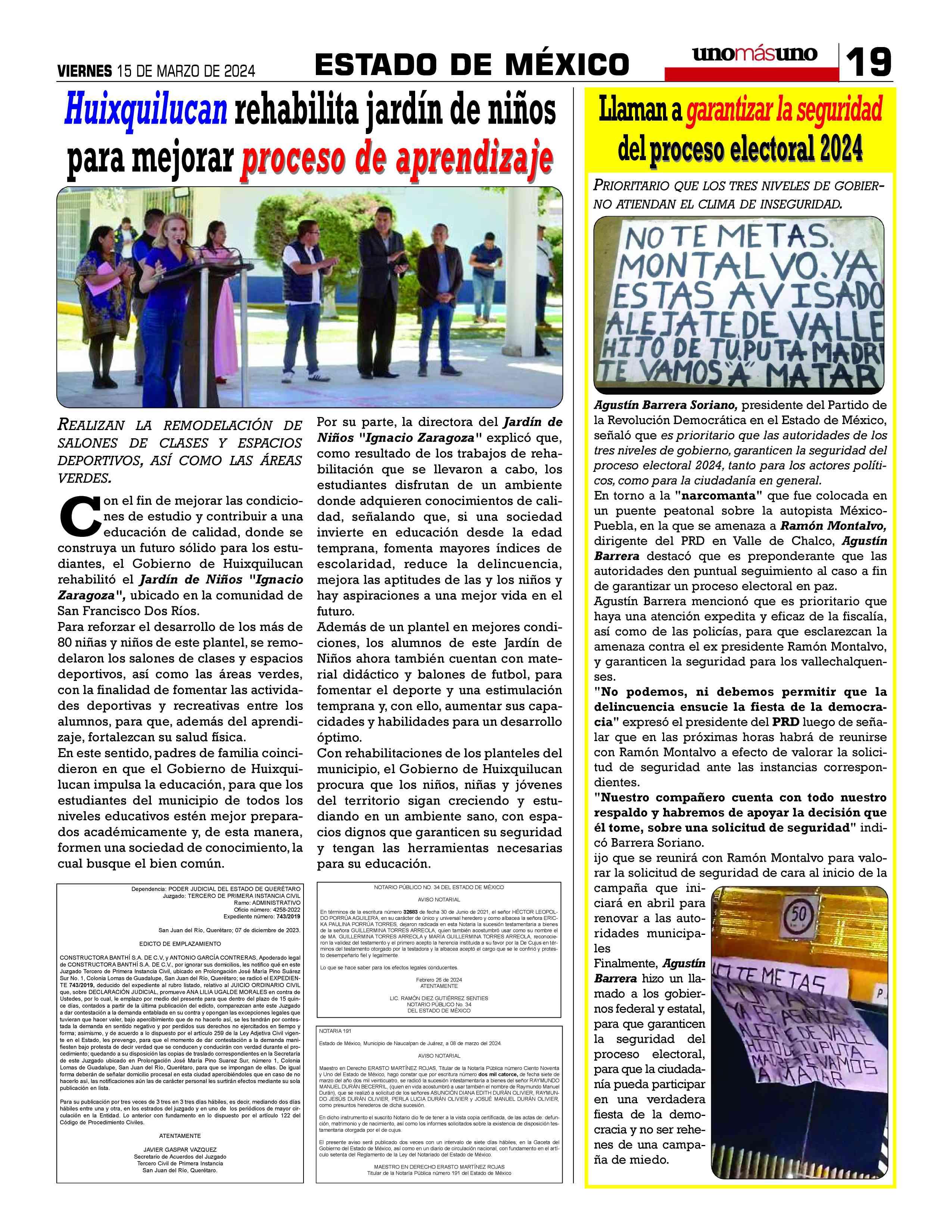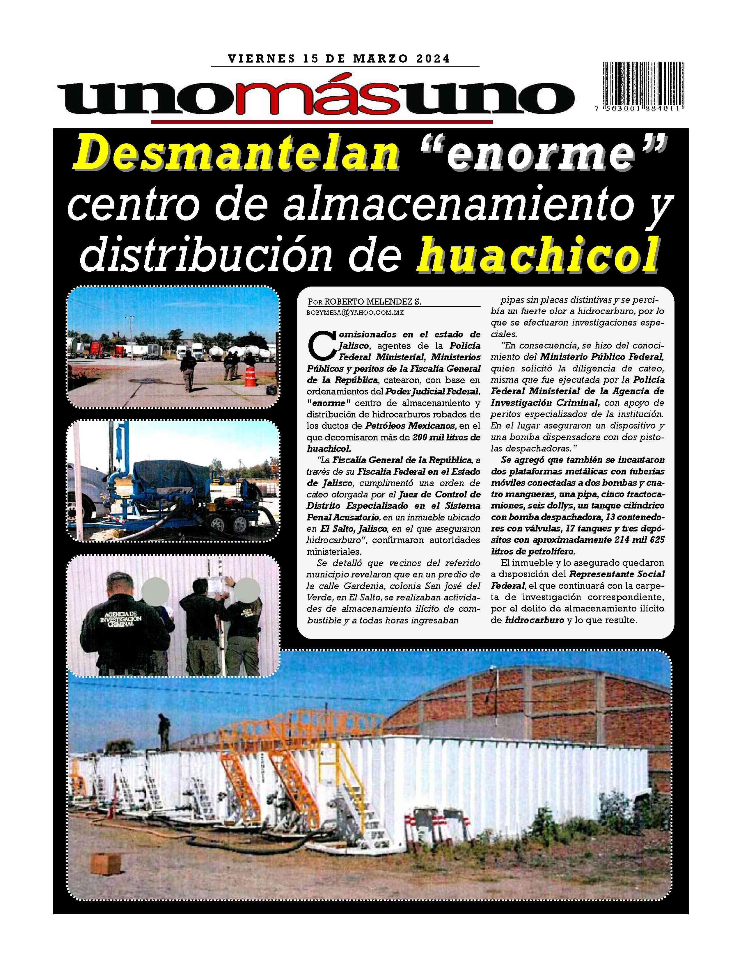 AñoXLV-Número16105Viernes15marzo2024 UNOMÁSUNONACIONALunapublicacióndiaria,editada ydistribuidaporArrendadoraMultiusos,S.A.deC.V. entalleresdeGabinoBarreda86bis.Col.SanRafael,Ciudad deMéxico,C.P.06470,DelegaciónCuauhtémoc TeléfonoCDMX:55/10555500.Ext.Redacción102-103y105, PlantaToluca017221340000Ext.116.