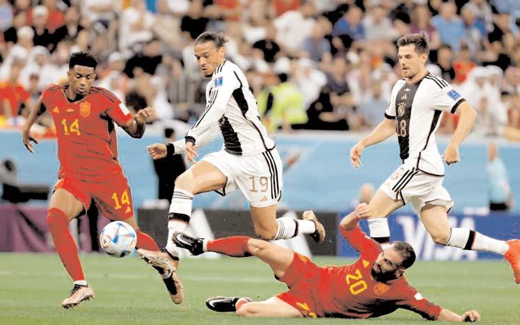 España y Alemania protagonizaron uno de los mejores partidos del Mundial Qatar 2022 que quedó reflejado en un empate (1-1). Ambas selecciones mantienen opciones de clasificar a octavos de final.En el encuentro de mayor duelo técnico en lo que va del Mundial Qatar 2022,Alemania neutralizó a España en el primer tiempo y todas sus figuras corrieron detrás del balón para lograrlo.Algunas ocasiones después,el primer tiempo acabaría sin goles
