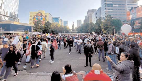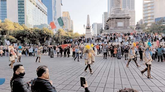 En punto de las 8:57,el presidente Andrés Manuel López Obrador salió de Palacio Nacional rumbo al Ángel de la Indepen-