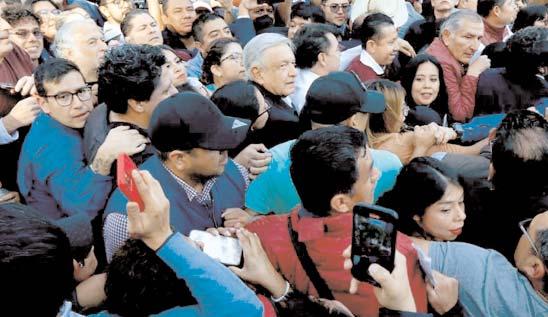 trataba de acercarse a él para tomarse la foto y muchos más para entregarle todo tipo de peticiones,finalmente el presidente Andrés Manuel López Obrador pudo llegar hasta la explanada principal del Zócalo capitalino en donde llevó a cabo el desglose de su Cuarto Informe de Gobierno.