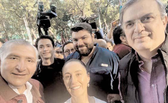 Manuel, la jefa de Gobierno de la Ciudad de México, Claudia Sheinbaum Pardo, el secretario de Gobernación, Adán Augusto López, el secretario de Relaciones Exteriores, Marcelo Ebrard Casaubón, así como la secretaria de Bienestar, Ariadna Montiel, y la secretaria de Seguridad y Protección Ciudadana, Rosa Icela Rodríguez, quienes a lo largo del recorrido se fueron quedando rezagados ante la multitud que cercaba al presidente López Obrador.