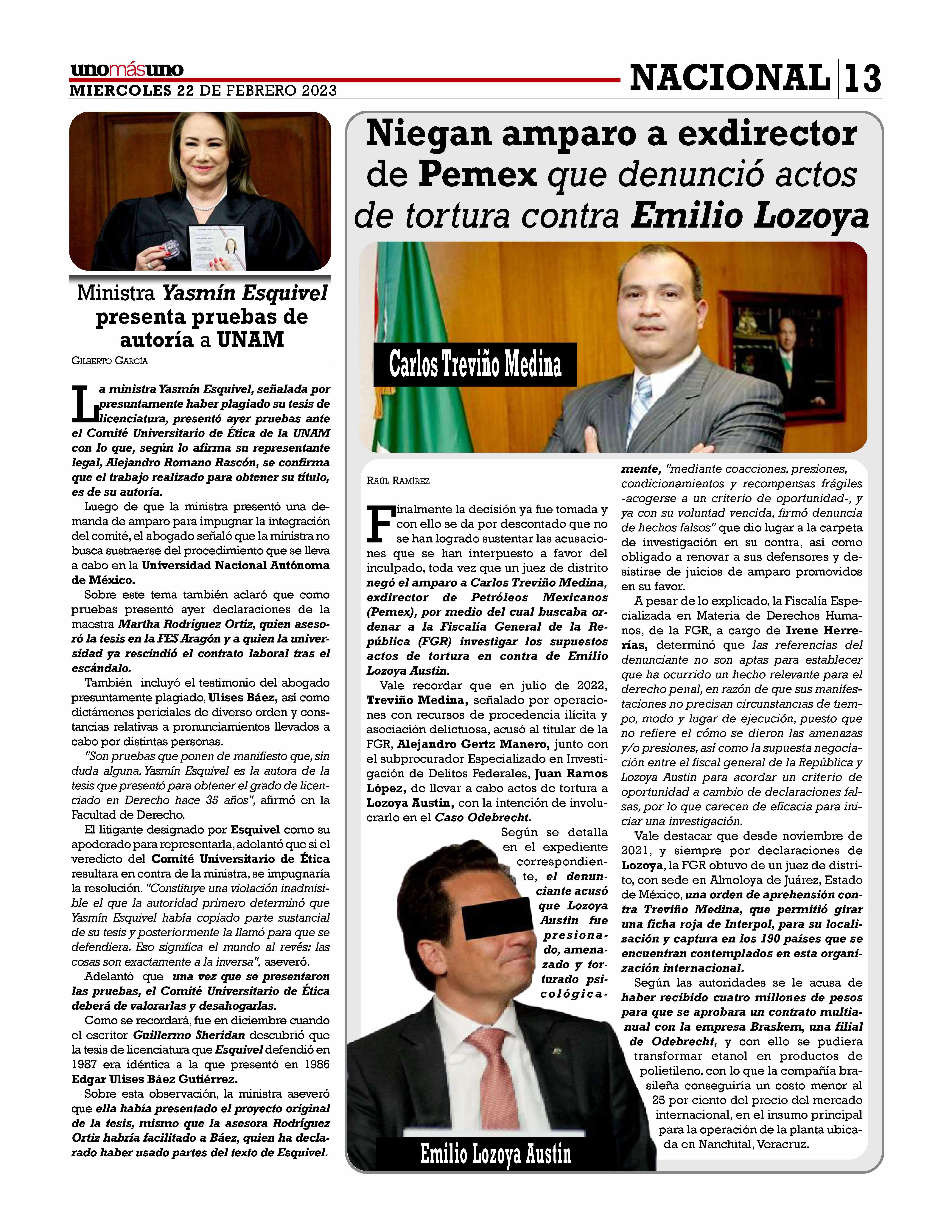 AñoXLV-Número15719Miércoles22defebrero2023 UNOMÁSUNONACIONALunapublicacióndiaria,editada ydistribuidaporArrendadoraMultiusos,S.A.deC.V. entalleresdeGabinoBarreda86bis.Col.SanRafael,Ciudad deMéxico,C.P.06470,DelegaciónCuauhtémoc TeléfonoCDMX:55/10555500.Ext.Redacción102-103y105, PlantaToluca017221340000Ext.116.