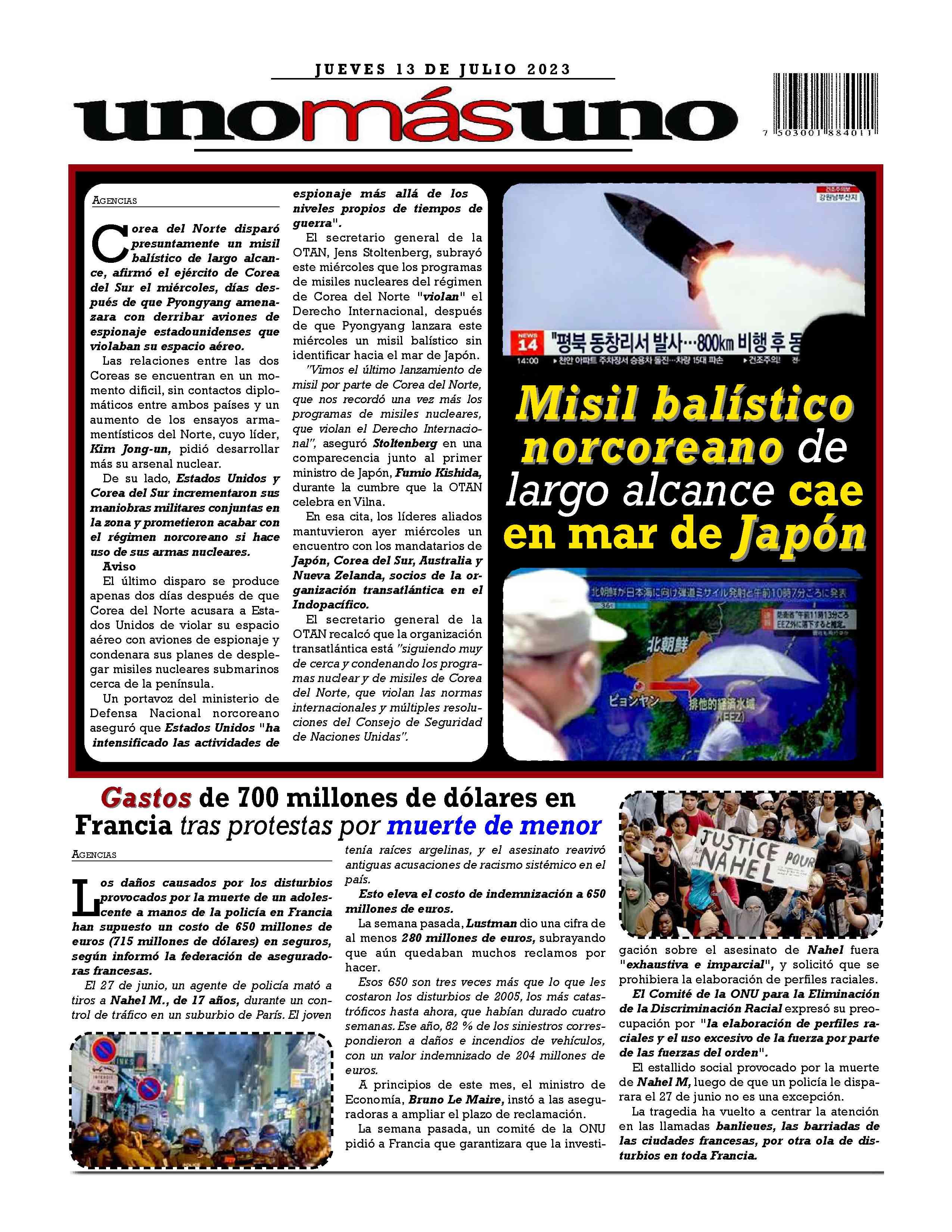 AñoXLV-Número15861Jueves13dejulio2023 UNOMÁSUNONACIONALunapublicacióndiaria,editada ydistribuidaporArrendadoraMultiusos,S.A.deC.V. entalleresdeGabinoBarreda86bis.Col.SanRafael,Ciudad deMéxico,C.P.06470,DelegaciónCuauhtémoc TeléfonoCDMX:55/10555500.Ext.Redacción102-103y105, PlantaToluca017221340000Ext.116.