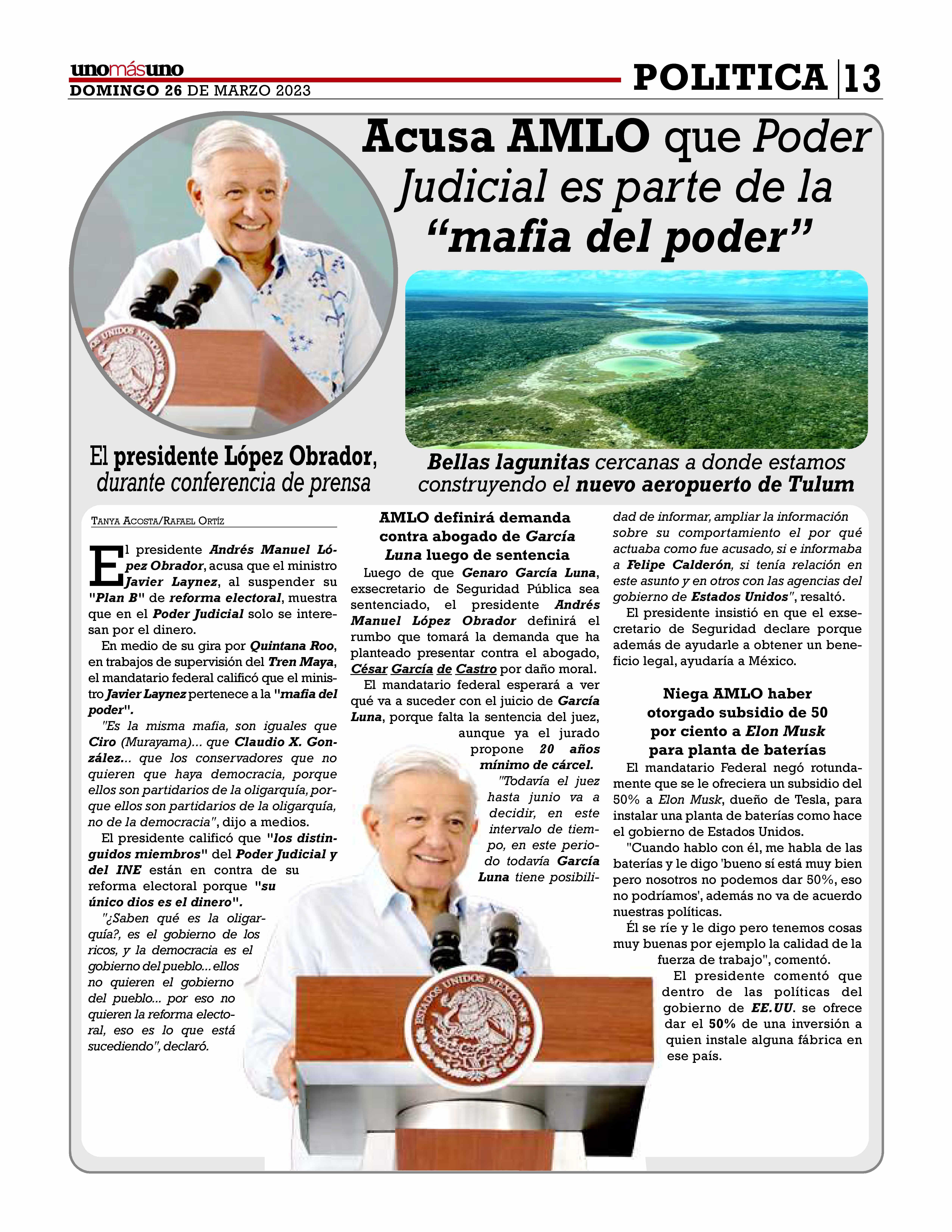 AñoXLV-Número15751Domingo26demarzo2023 UNOMÁSUNONACIONALunapublicacióndiaria,editada ydistribuidaporArrendadoraMultiusos,S.A.deC.V. entalleresdeGabinoBarreda86bis.Col.SanRafael,Ciudad deMéxico,C.P.06470,DelegaciónCuauhtémoc TeléfonoCDMX:55/10555500.Ext.Redacción102-103y105, PlantaToluca017221340000Ext.116.