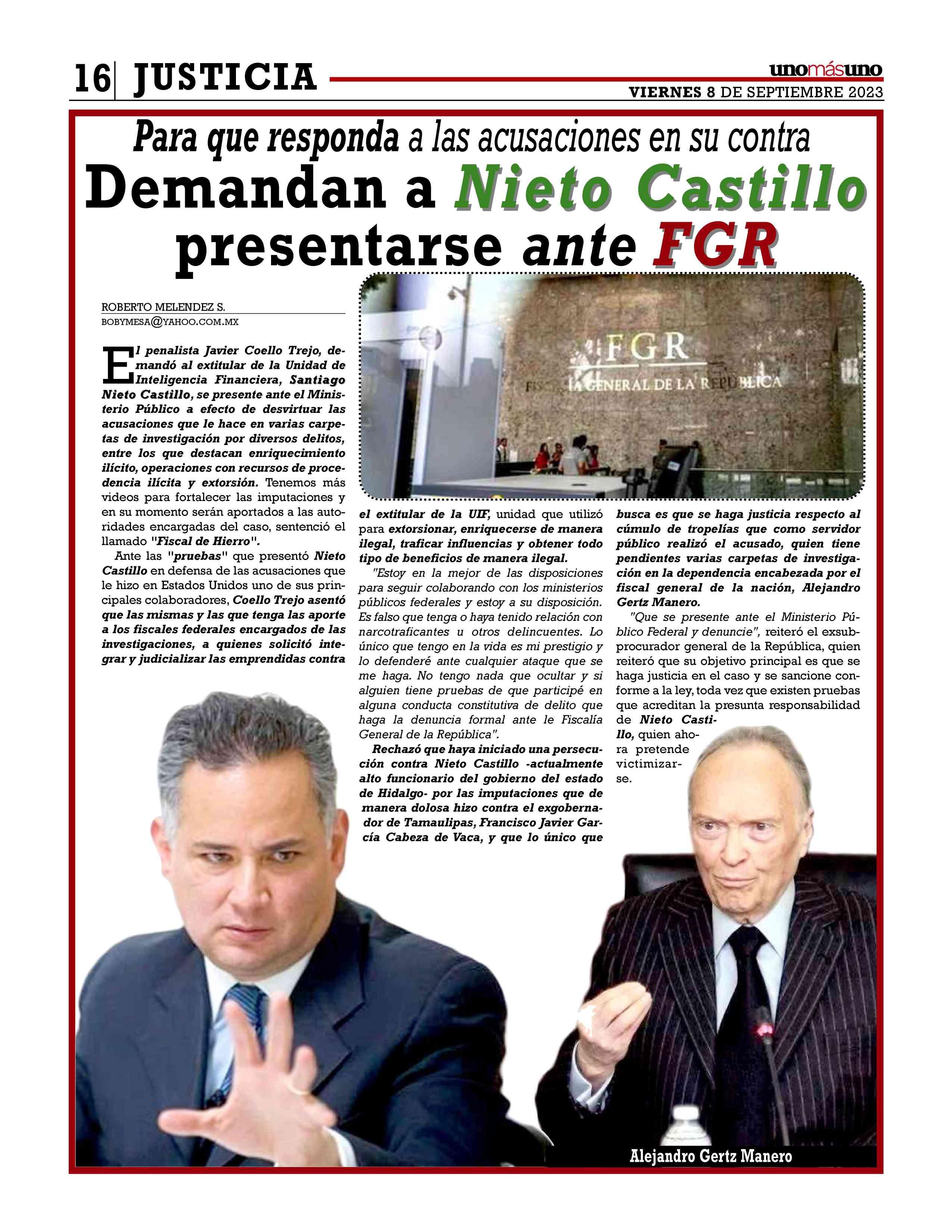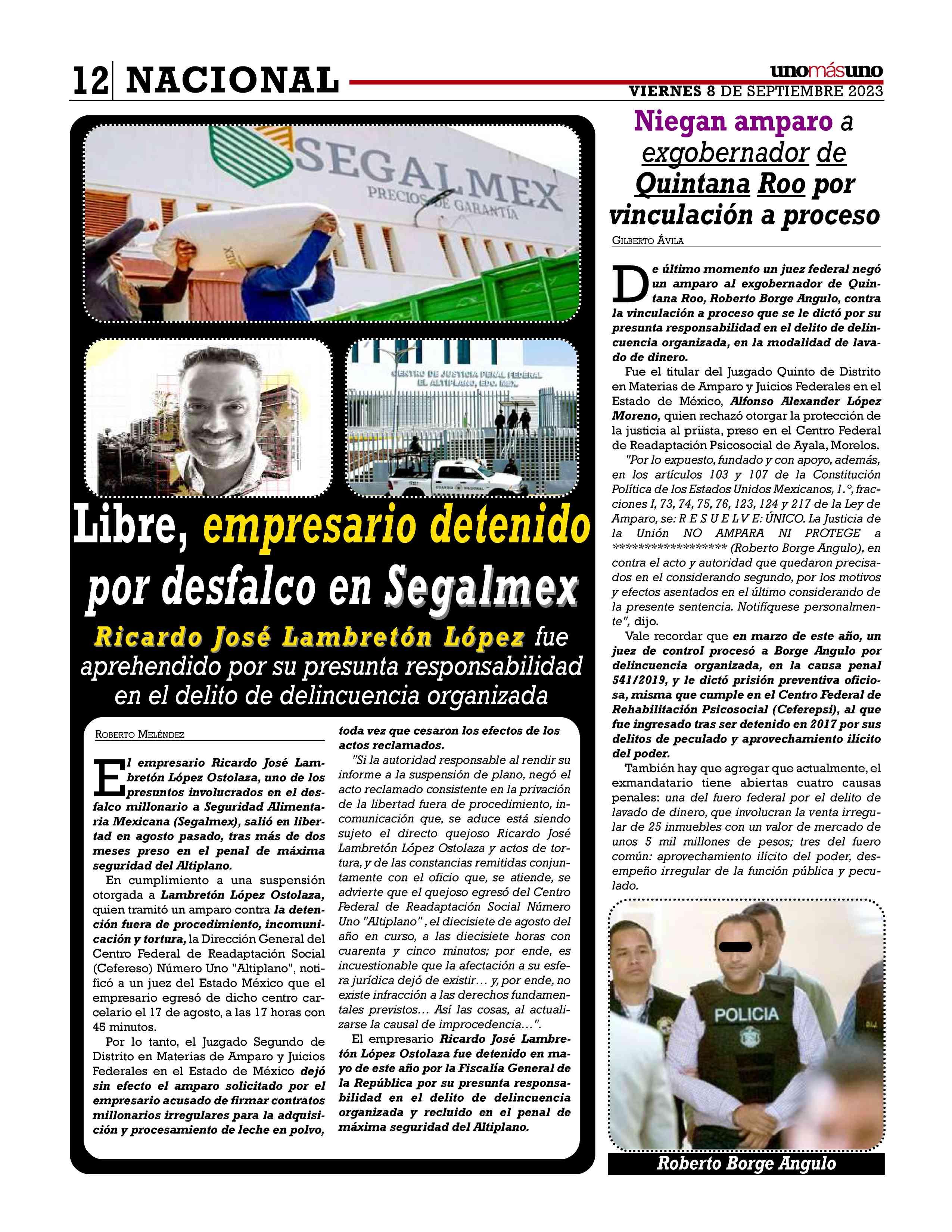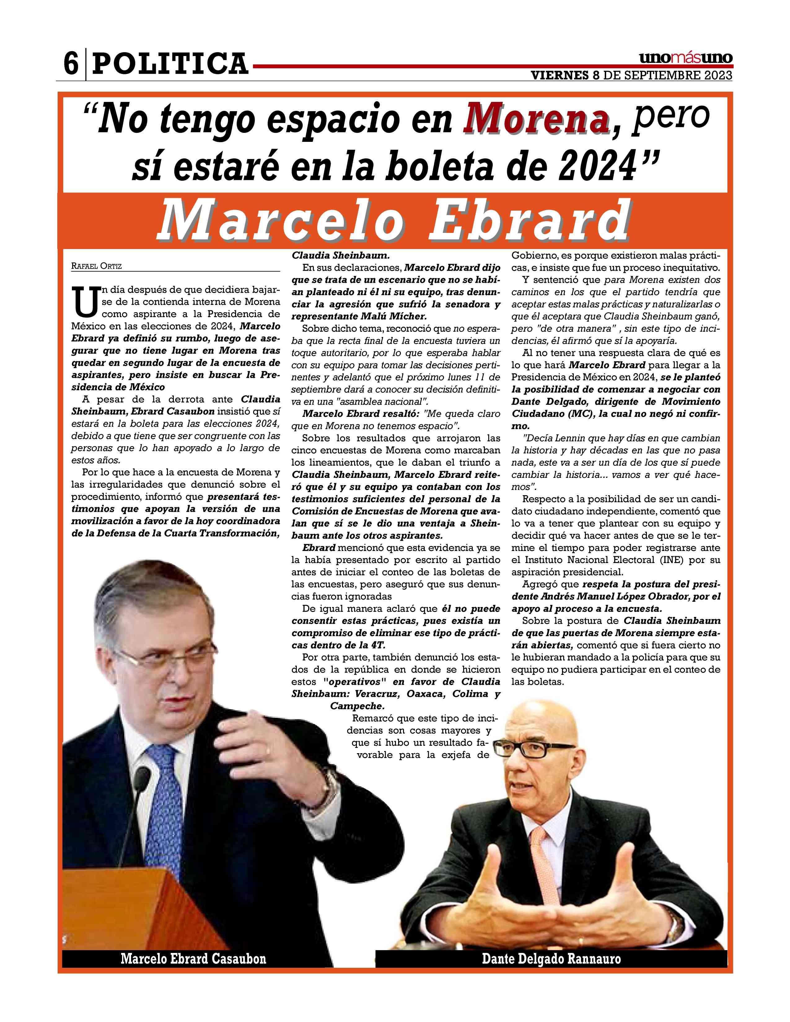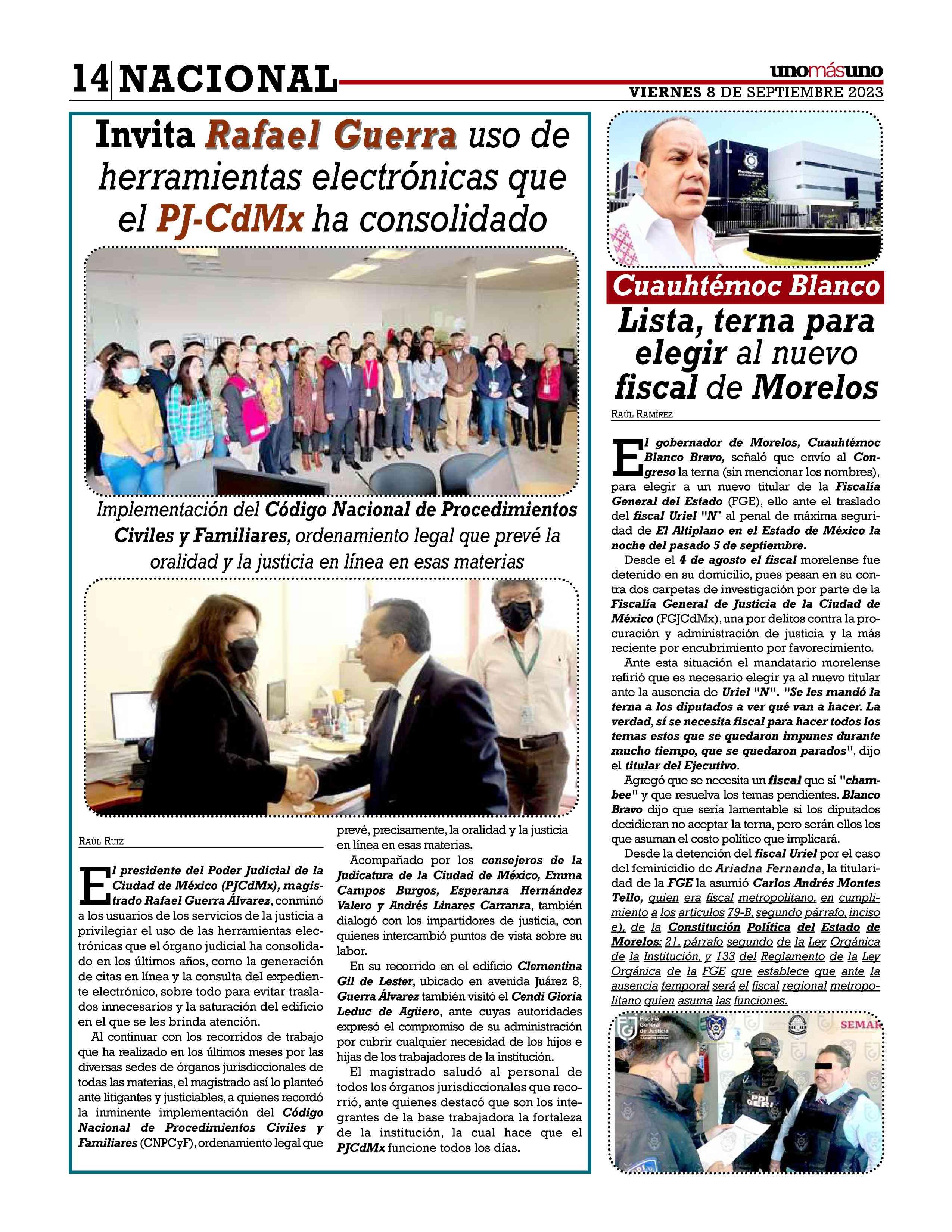 AñoXLV-Número15920Viernes8deseptiembre2023 UNOMÁSUNONACIONALunapublicacióndiaria,editada ydistribuidaporArrendadoraMultiusos,S.A.deC.V. entalleresdeGabinoBarreda86bis.Col.SanRafael,Ciudad deMéxico,C.P.06470,DelegaciónCuauhtémoc TeléfonoCDMX:55/10555500.Ext.Redacción102-103y105, PlantaToluca017221340000Ext.116.