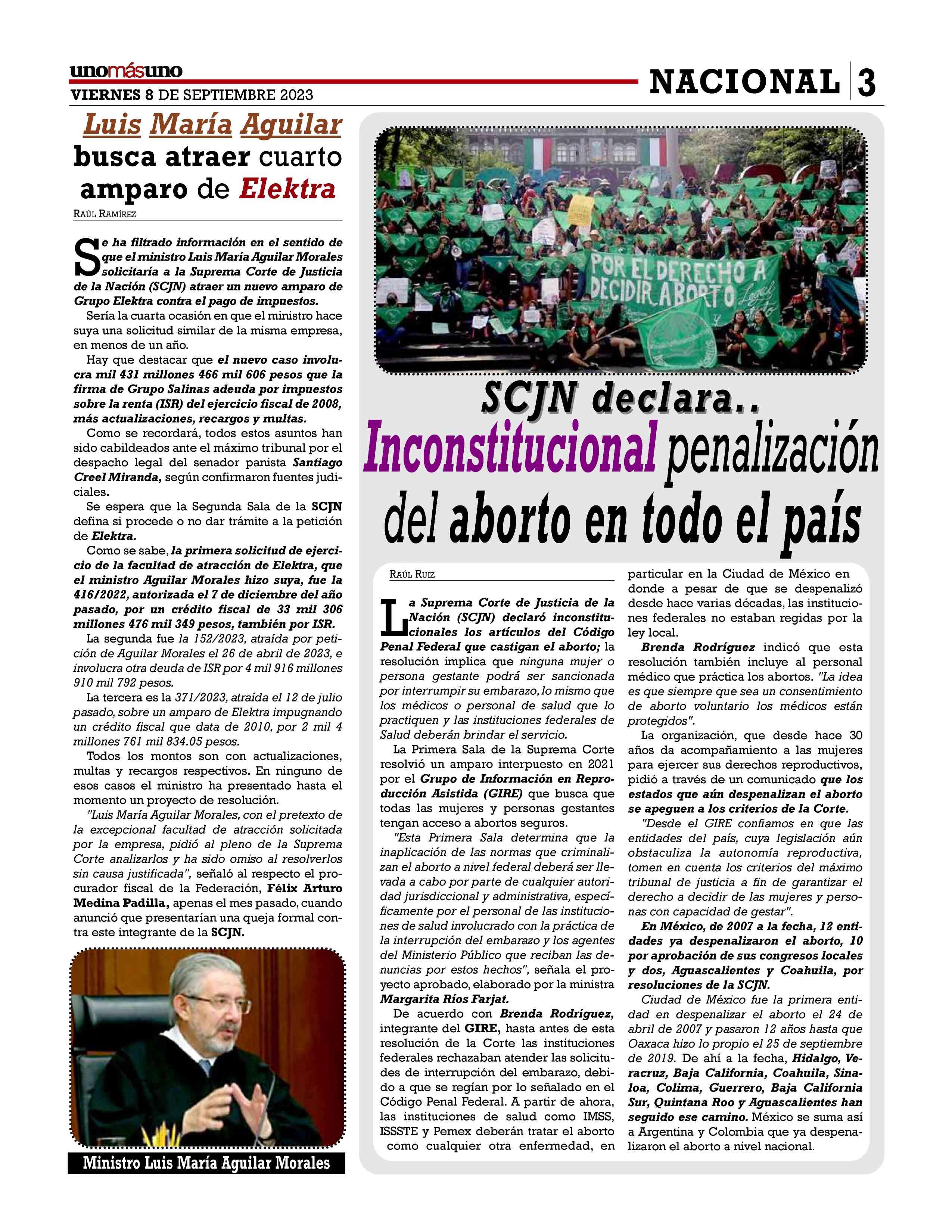 SCJNdeclara.. SCJNdeclara.. Inconstitucional penalizacióndel abortoenelpaís