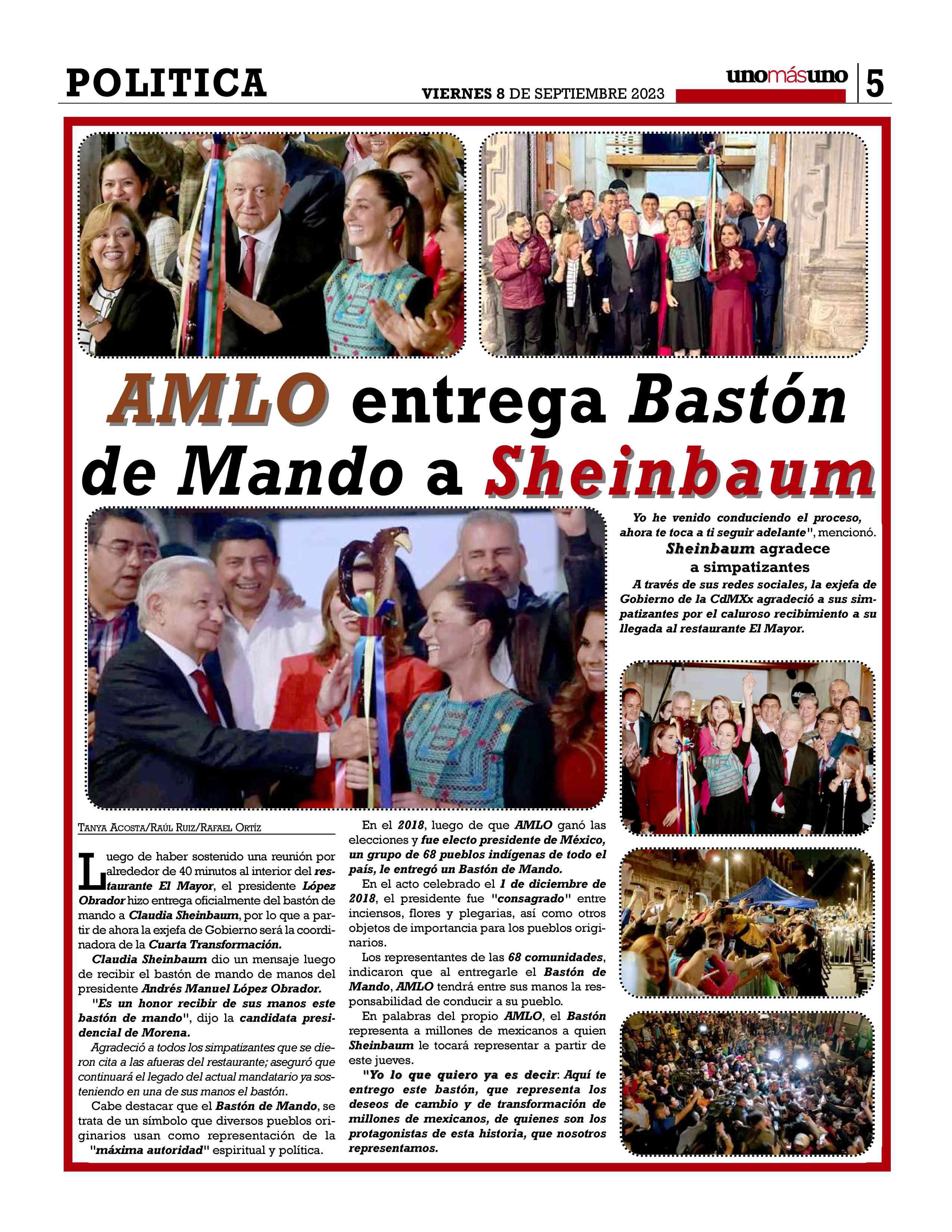 DirectoraGeneral:Dra.KarinaA.RochaAñoXLIVNÚMERO15920 PresidenteEditor:Dr.NaimLibienKaui P.14 P.3 P.6 P.7 1Pesos 0 VIERNES8DESEPTIEMBRE2023 P. 4-5 Laotradisputaqueviene... AspirantesdelFAM FAMvan porJefaturadeGobierno ymásalcaldíasen2024 alcaldíasen2024 P.10 AMLO AMLOentrega BastóndeMando BastóndeMando aSheinbaum Sheinbaum