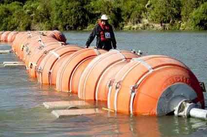 UnjuezfederalenTexasordenóestemiércolesalgobiernoestatalretiraruna barreradeboyasinstaladasobreelrío Grande,enlafronterasurdeEstadosUnidos, antesdel15deseptiembre.