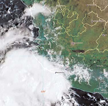 extenderá sobre la Sierra Madre Occidental y el centro del país,asimismo otro desde el suroeste del golfo de México hasta el sureste del territorio nacional,ocasionando lluvias aisladas y chubascos vespertinos sobre el centro,oriente,sur y sureste mexicano,así como la Península de Yucatán,con lluvias puntuales muy fuertes en Chiapas.