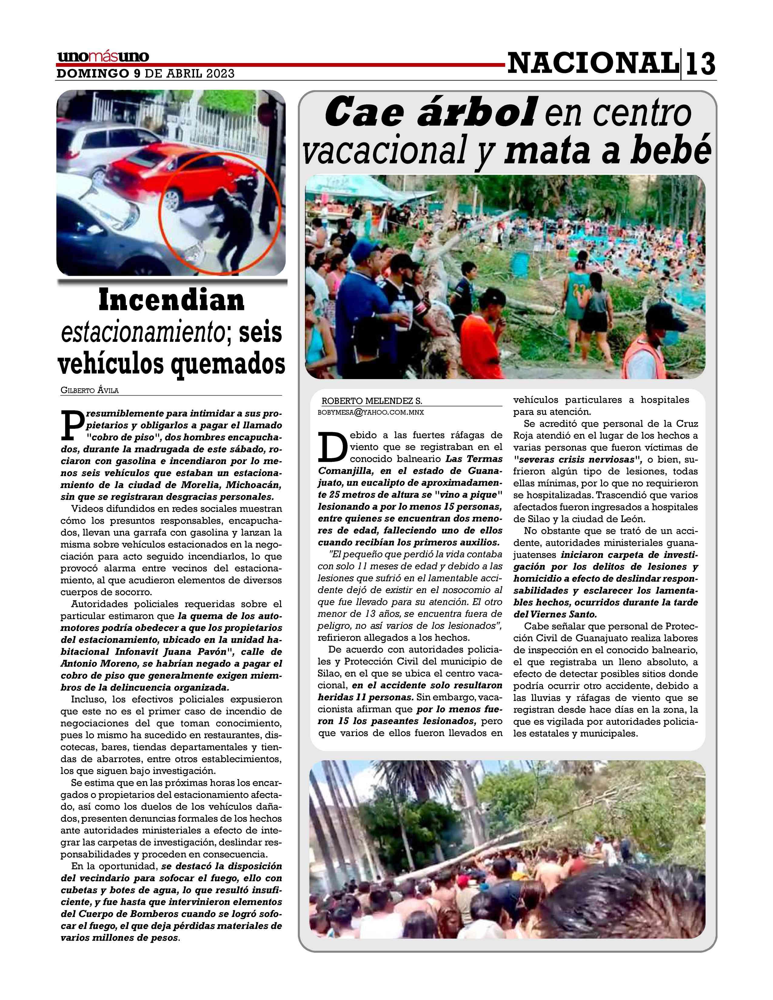 AñoXLV-Número15765Domingo9deabril2023 UNOMÁSUNONACIONALunapublicacióndiaria,editada ydistribuidaporArrendadoraMultiusos,S.A.deC.V. entalleresdeGabinoBarreda86bis.Col.SanRafael,Ciudad deMéxico,C.P.06470,DelegaciónCuauhtémoc TeléfonoCDMX:55/10555500.Ext.Redacción102-103y105, PlantaToluca017221340000Ext.116.