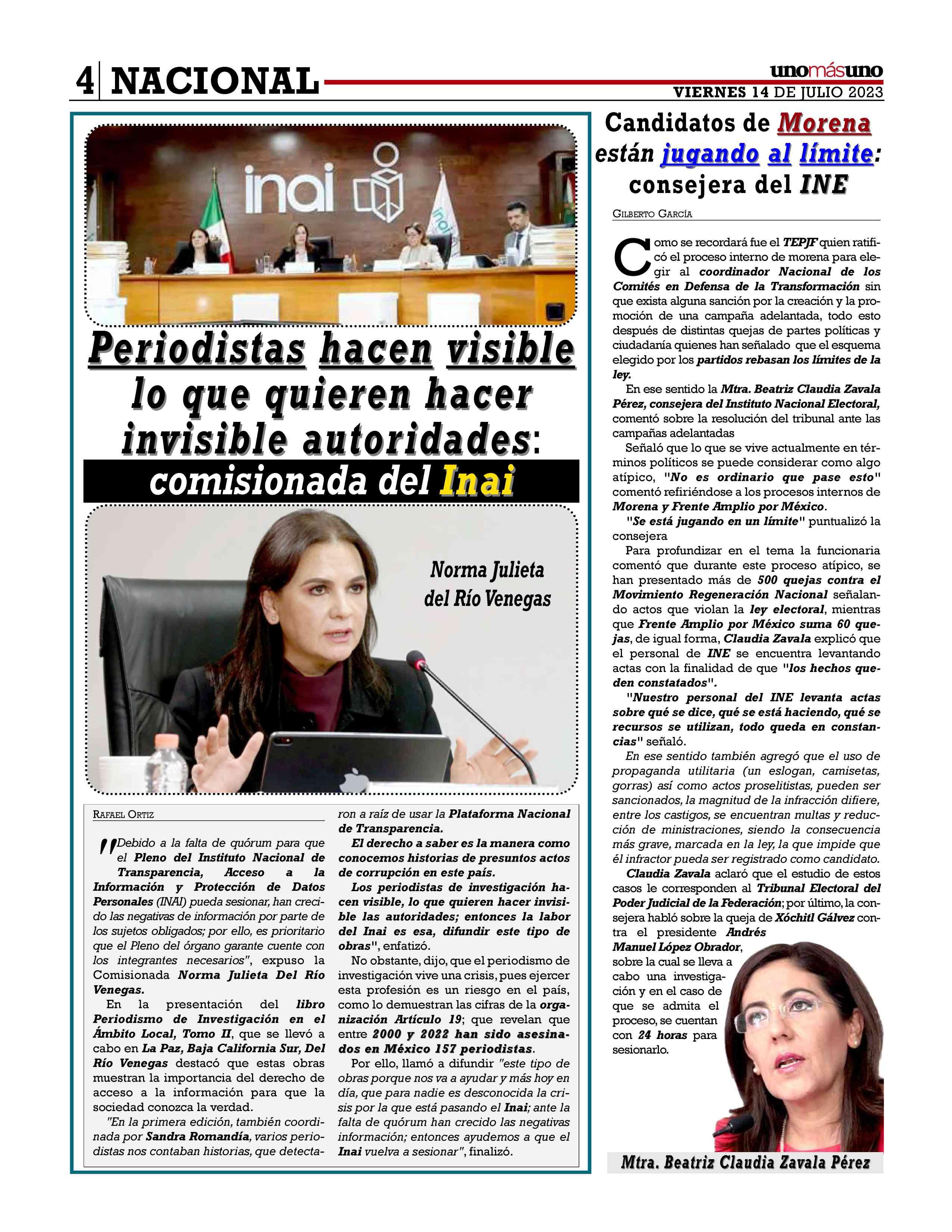 Valedestacarenestesentido,queel InstitutoNacionaldeTransparenciaseguirásinpodersesionarporfaltadequórum, porlomenoshastaagostoenquelaCorte vuelvaaretomareltemayfijelosefectos quepermitanoperaralINAI.