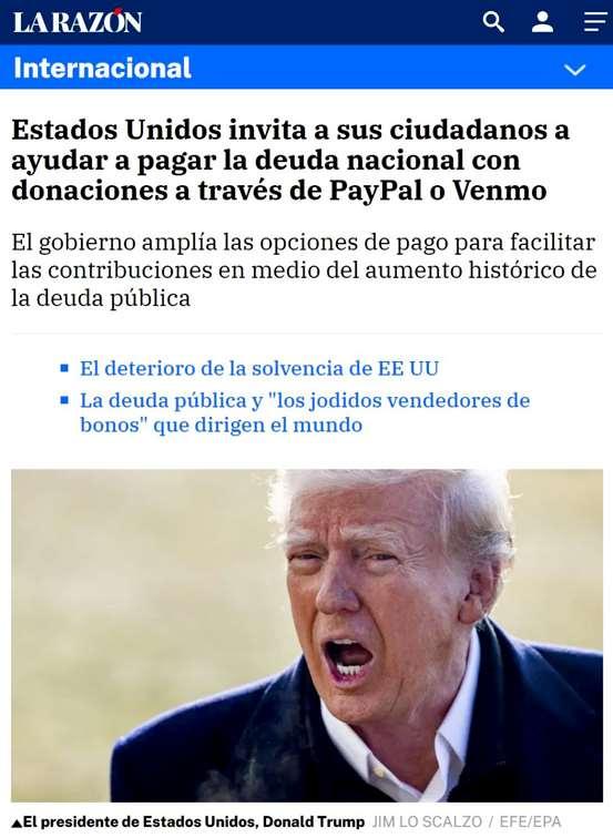 nte unadeudanacionalque supera los 36.7 billones de dólares y sigue en ascenso, el gobierno de Estados Unidos ha relanzado un programa poco convencional:permitir que los ciudadanos donendinero para reducir el pasivo nacional, ahora a través de plataformas digitales como PayPal yVenmo.