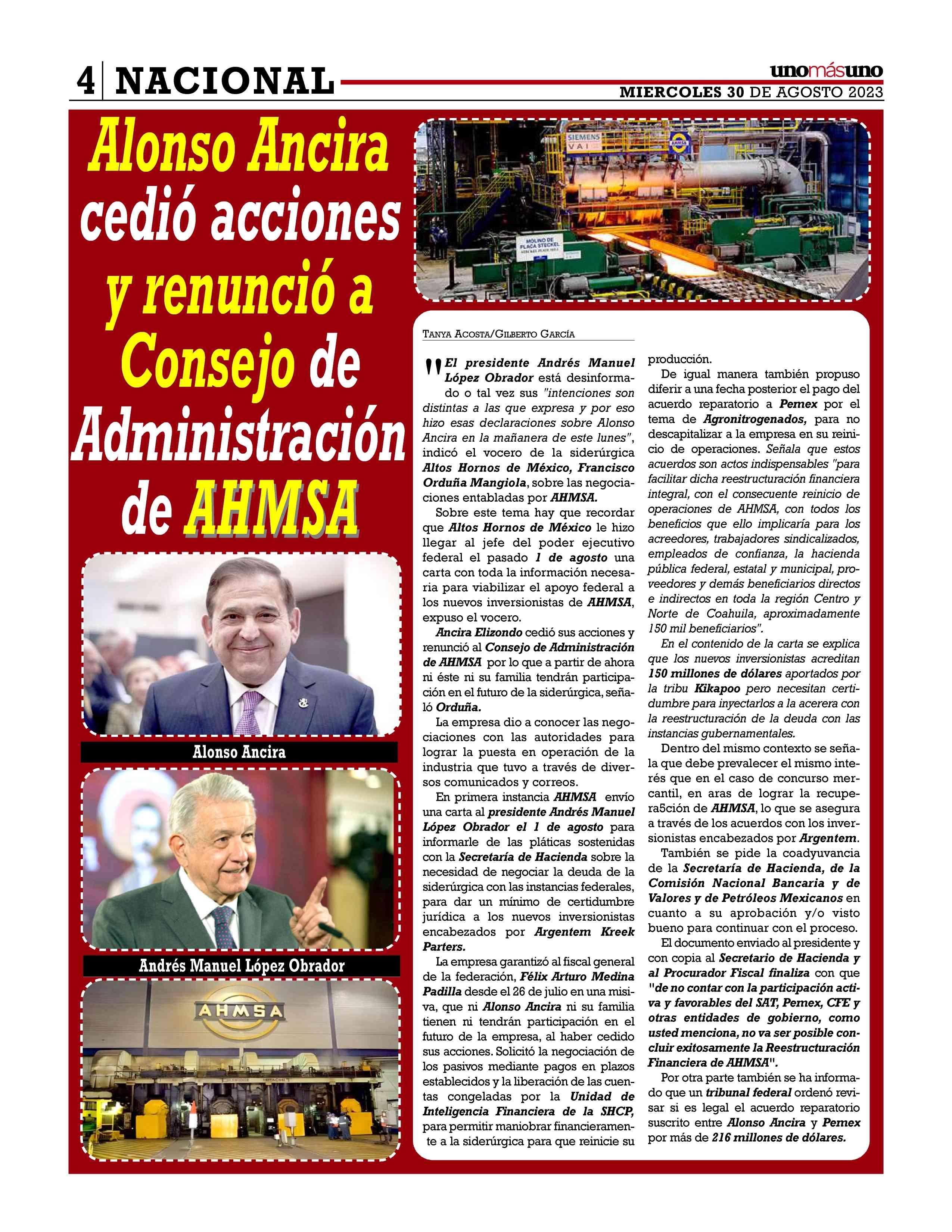 AñoXLV-Número15911Miércoles30deagosto2023 UNOMÁSUNONACIONALunapublicacióndiaria,editada ydistribuidaporArrendadoraMultiusos,S.A.deC.V. entalleresdeGabinoBarreda86bis.Col.SanRafael,Ciudad deMéxico,C.P.06470,DelegaciónCuauhtémoc TeléfonoCDMX:55/10555500.Ext.Redacción102-103y105, PlantaToluca017221340000Ext.116.