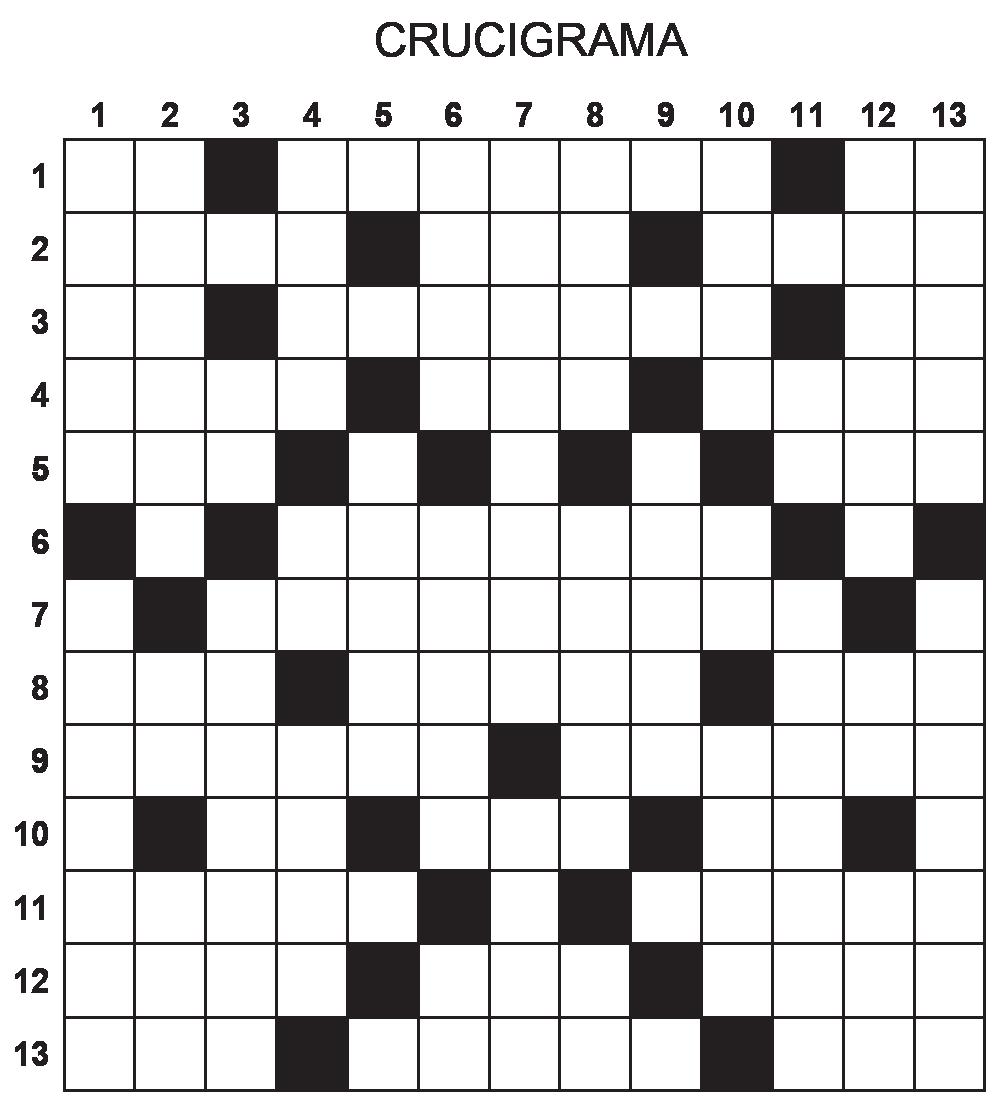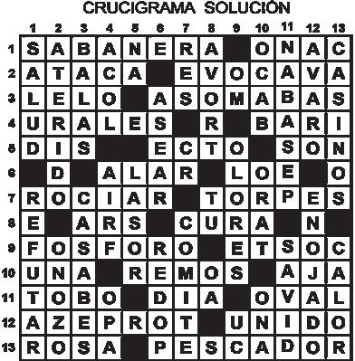 1.- Antiguo Testamento (Siglas) – Elevado, insigne, sublime, eximio –Siglas de Associated Press. /2.- Pasar la vista por lo escrito –(Ven) Contestación telefónica – (Ven) Cola de las bestias. /3.- Terminación del infinitivo – Contienda, lid, combate –Terminación de los alcoholes. /4.- (Inv) Ciudad, metrópolis – Oreja de las tazas – Luiz Inácio ___ da Silva, presidente de Brasil. /5.-(Inv) Cuadrilátero de boxeo – Tratamiento honorífico en inglés. /6.- Simón ____ El más grande de América. /7.- Derogaron, abolieron, invalidaron. /8.- Patriarca que construyó el arca –Hace anotaciones – Todavía. /9.Esclarezca, dilucide, despeje lo dicho –Escupe. /10.- Símbolo del oro – Siglas de Sanidad y Asistencia Social - Siglas de extraterrestre. /11.- Alimenta, aporta nutrientes – Influenza, catarro. /12.- Fértil valle y río del estado Yaracuy – Casa, hogar, fogón – (Inv) Piedra de gran tamaño. /13.- Señal internacional de auxilio – Relativo a la conducta humana en cuanto el bien y el mal, ético – Metal precioso.
