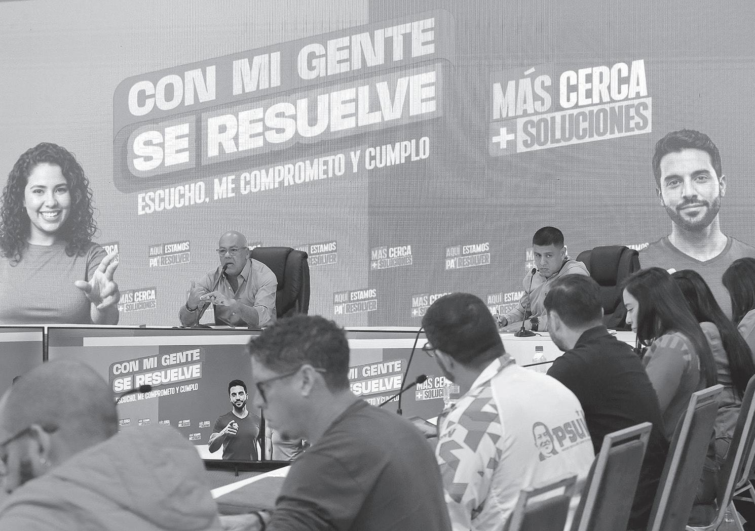 El jefe del Comando de Campaña Ven 25+, Jorge Rodríguez, y dirigentes del Psuv sostuvieron ayer un encuentro para afinar estrategias de la campaña. P5