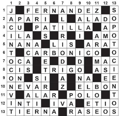 1.- Nota musical. –Armazón de vigas o rejas que soporta plantas trepadoras para dar sombra. – Nombre de letra. /2.- Hace surco con el arado. – (Ven.) Larense, barquisimetano. – Tanto en el futbol. /3.- Prefijo que colocado delante de una unidad la multiplica por diez a la nueve (Un millardo). – Extremidad de las aves. – Expresión griega que significa, hermoso, agradable, bien hecho. /4.- Abreviatura de Usted. – Relativo al zenit. – Símbolo del Manganeso. /5.- Nave, embarcación. – Pasar la lengua, repetidamente, por una superficie. –(Inv.) fluido aeriforme. /6.- Población del estado Miranda Cap. Del Municipio Urdaneta. –Organización separatista vasca. /7.- Conozco, estoy enterado. – Gorra papal. – Símbolo del Radio. /8.- Dios de los vientos.