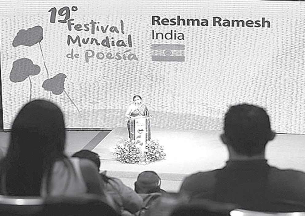“Esto no es un poema”, dijo la poetisa de la India Reshma Ramesh, iniciando el recital, para protestar sobre la guerra que sufre Palestina (país honrado por el festival), sometida por los poderes imperiales.