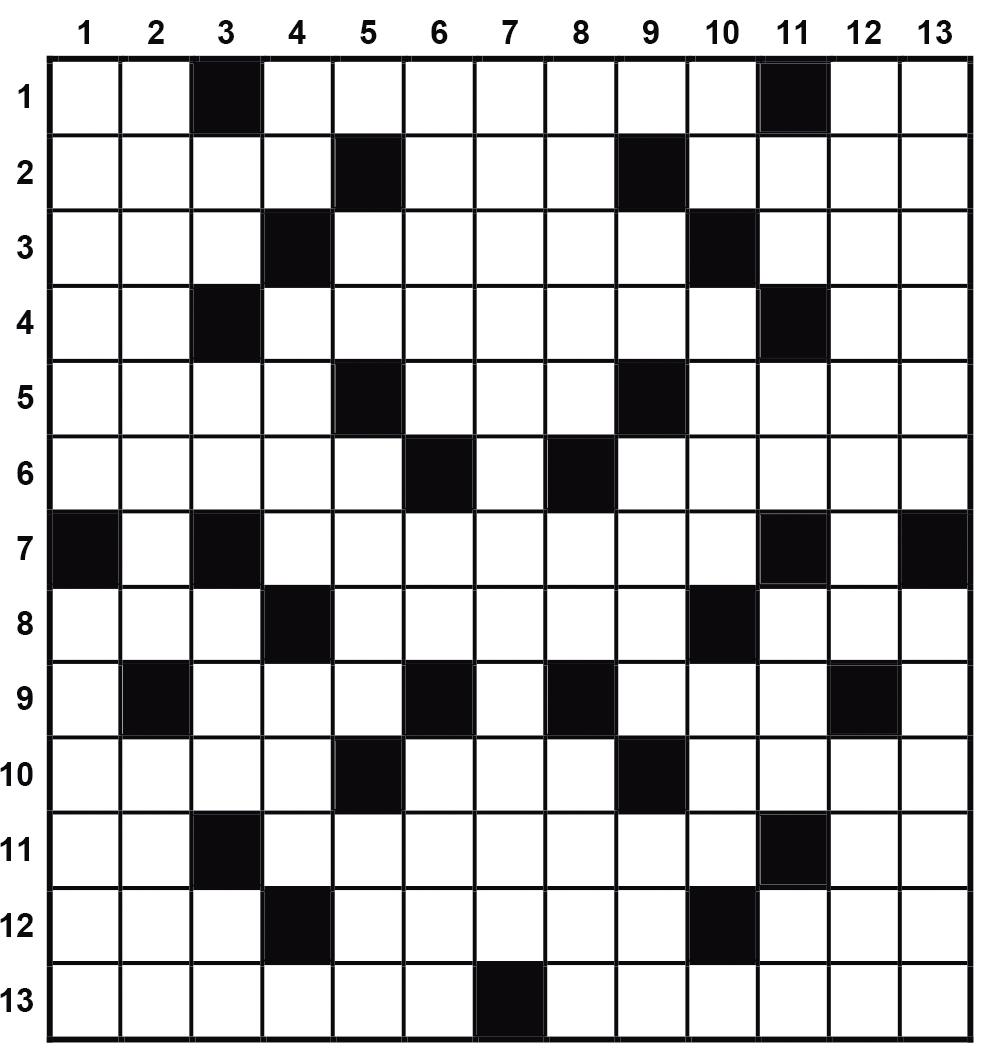 1.- Antes de Cristo (siglas). – Edificación destinada al alojamiento militar. – El primero en su clase. /2.- Alimento enviado por Dios a los hebreos en el desierto. – Pierde la vertical, se desploma. – Mama de las vacas, teta. /3.- Hace surcos con el arado.– Caja de valores.– (Inv) Radio Televisión de Portugal (siglas). /4.- Símbolo del neodimio. - Matanza, exterminio, mortandad. – Cuatro en números romanos. /5.Depósito de granos. – (Inv) Organización de Estados Americanos (siglas). – (Inv) Instituto de Financiamiento Agrícola y Pecuario. /6.- (Ven) Achiote, bija. – Aprisco cerrado para el ganado. /7.- Oportunidad, coyuntura, momento propicio. /8.- (Inv) Nombre de varón de origen árabe. – Estado llanero limítrofe con Colombia. – Animal cuadrúpedo de granja. /9.- (Inv) (Ven) Rasca, juma, borrachera. –Calle de un pueblo. /10.- Antigua moneda italiana. – Asistirá, se dirigirá. – (Inv) Siente temor. /11.- Símbolo del osmio. – Máscaras, antifaces. – Símbolo del titanio. /12.- Uno de los sonidos del reloj. – Raja de leña a medio arder, brasa. – Gran masa de agua salada. /13.- Soplones, infiltrados, delatores. – Oriunda, originaria.