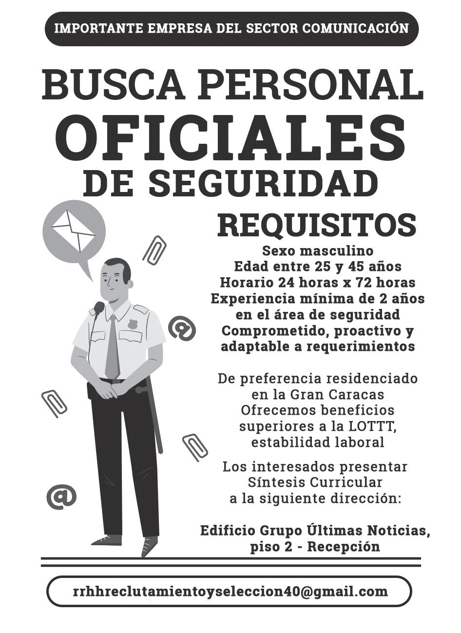 DEFCOM GROUP SOLICITA vigilantes y supervisor en Caracas. Interesados enviar currículo a defcomgroup@gmail.com o comunicarse al: 0422-290.20.00