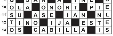 1.- Parque Nacional de 170 km². en el estado Táchira. /2.- Elemento de número atómico 2 y símbolo He. – (Inv) Reunión nocturna con cantos y bailes. /3.- Natural de Irán. –Baraja con el número uno. – (Inv) Descifre lo escrito. /4.- Símbolo del galio. – (Inv.) Asistente del jugador de golf. - 50, 100 y 1000 en números romanos. /5.- Expresión taurina. – (Inv) Rostro. /6.- (Inv) Apócope de Pilar. - (Inv) Onomatopeya del mugido. – Símbolo del rutenio. – (Inv) Río de Italia. /7.- Diego ______. Uno de los grandes muralistas mexicanos. –Aripo, Plancha de metal o barro para tender arepas. /8.- Caso de diptongo. – Sociedad Anónima (Siglas). – Caso de diptongo. –(Inv) Dañada, que tiene una rotura. /9.- Capital de Arabia Saudita. – Bienal de Teatro Amateur (Siglas). /10.- Dirección de Sanidad Agrícola (Siglas). – Instituto Autónomo de Medicina Alopática (Siglas). –Asamblea Nacional (Siglas). /11.- Teatro Experimental Universitario (Siglas). –Ciudad de caldea patria de Abraham. – (Inv) Variedad alotrópica del oxígeno. /12.- Surge, brota, proviene de –(Inv) Cuba de madera para pisar o prensar uvas u olivas. /13.- Grande liga venezolano que juega con los Tigres de Detroit.